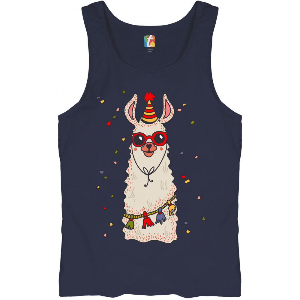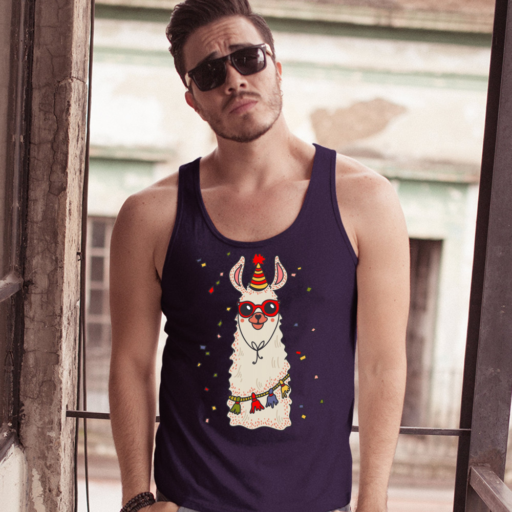 CHRISTMAS LLAMA tank top merry and bright let it snow funny xmas men's top navy blue