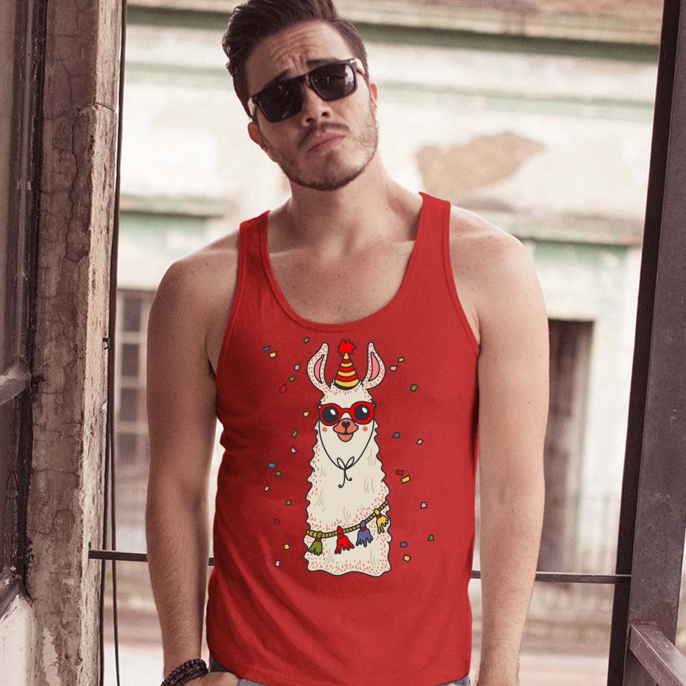 CHRISTMAS LLAMA tank top merry and bright let it snow funny xmas men's top red