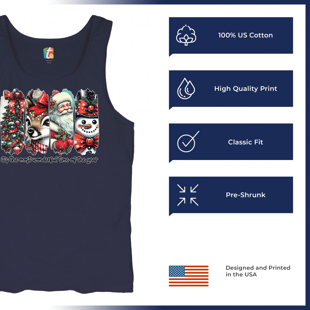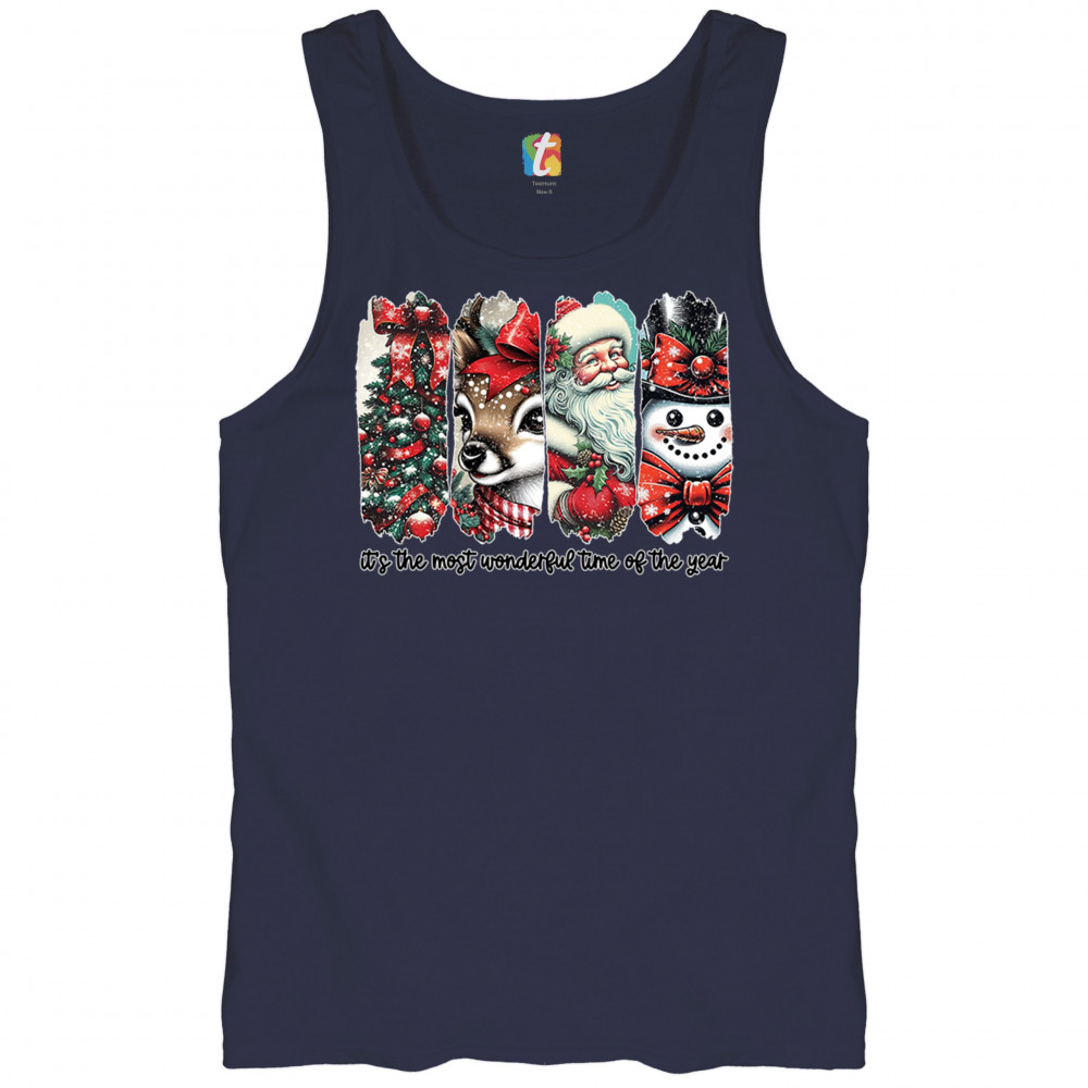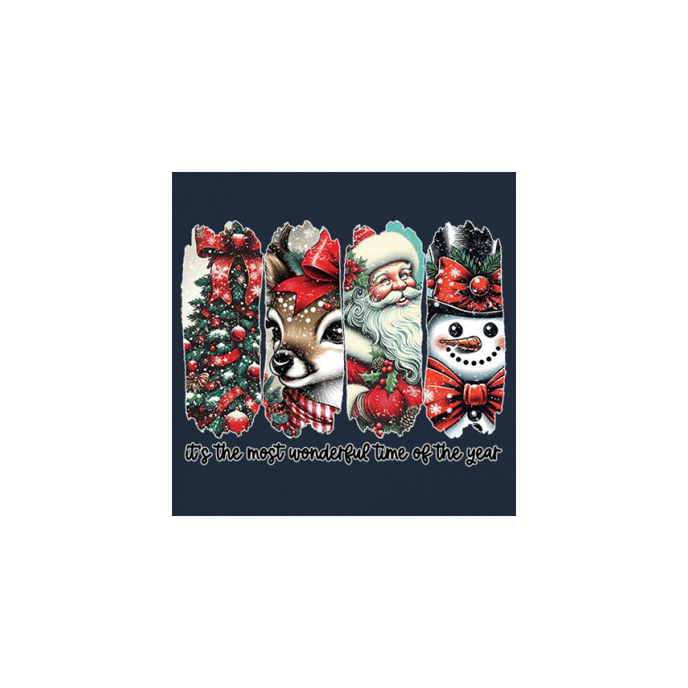 This Christmas design blends a decorated tree, sweet reindeer, vintage Santa, and a bright snowman for a classic seasonal look. Ideal for holiday lovers, winter gatherings, festive parties, gift exchanges, Christmas morning, and anyone who enjoys cheerful, nostalgic holiday art. A warm, eye-catching design that brings out the magic of the season.