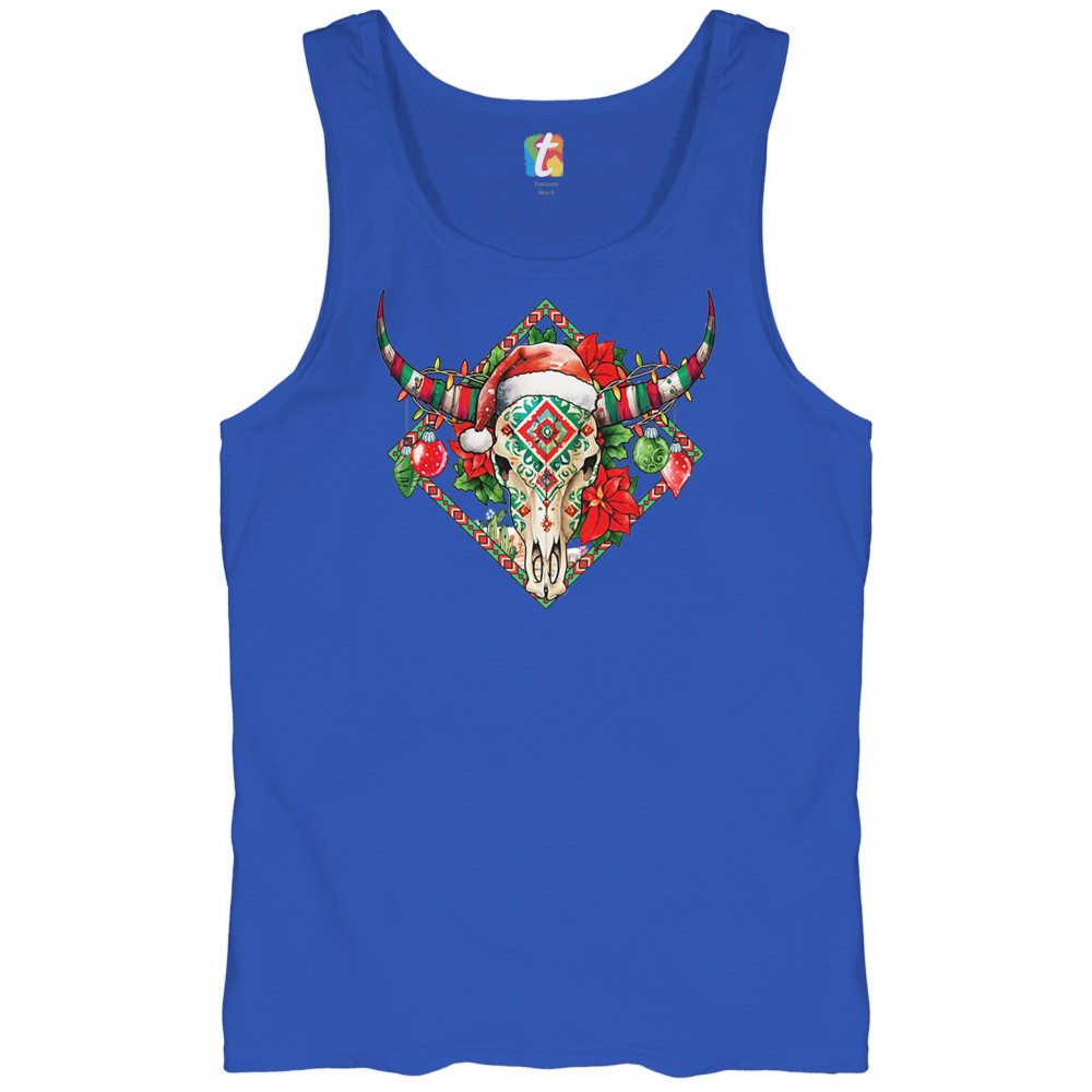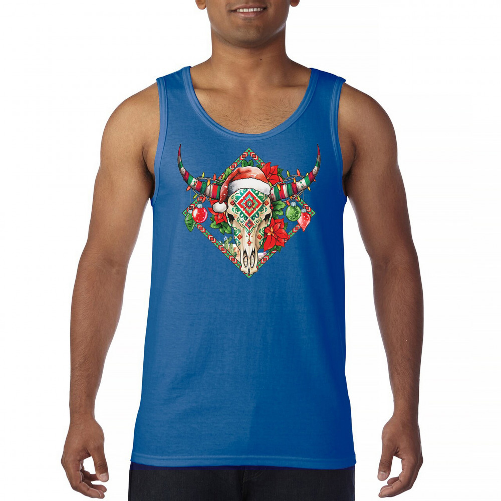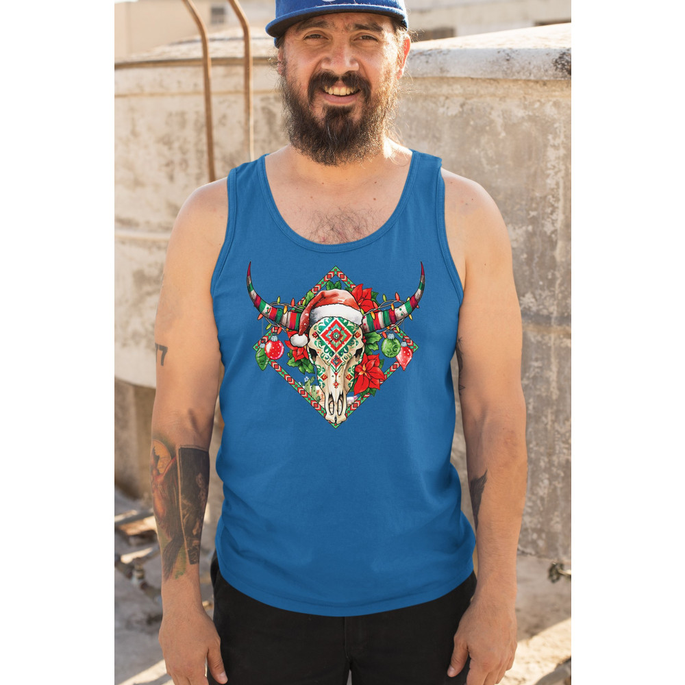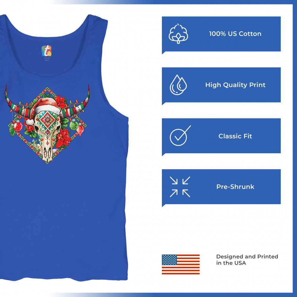 Blend Southwestern charm with holiday cheer! This vibrant skull design with poinsettias and ornaments is perfect for festive parties and unique gifts!