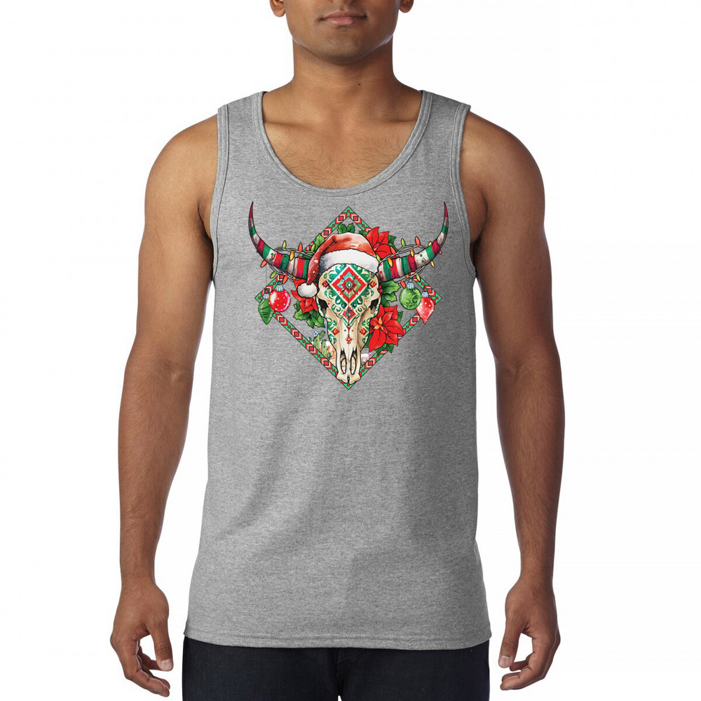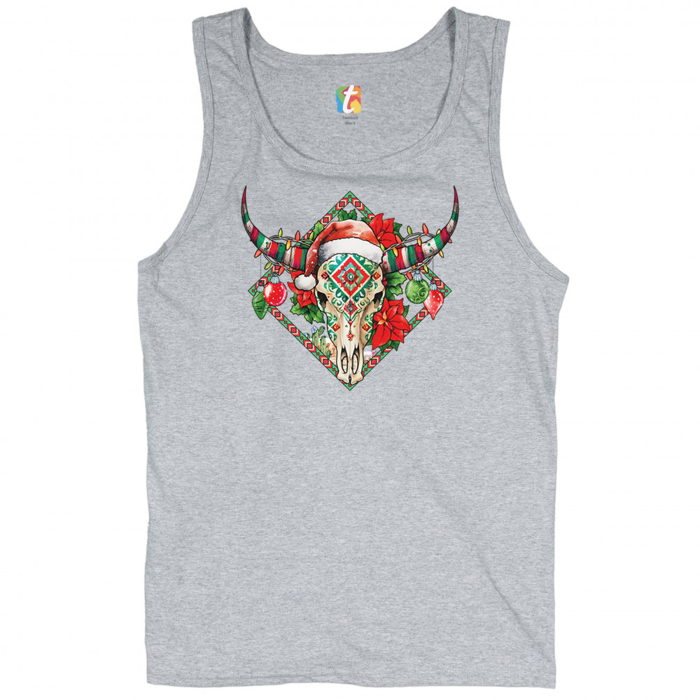 Blend Southwestern charm with holiday cheer! This vibrant skull design with poinsettias and ornaments is perfect for festive parties and unique gifts!