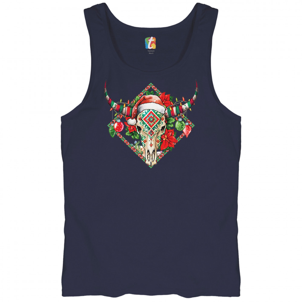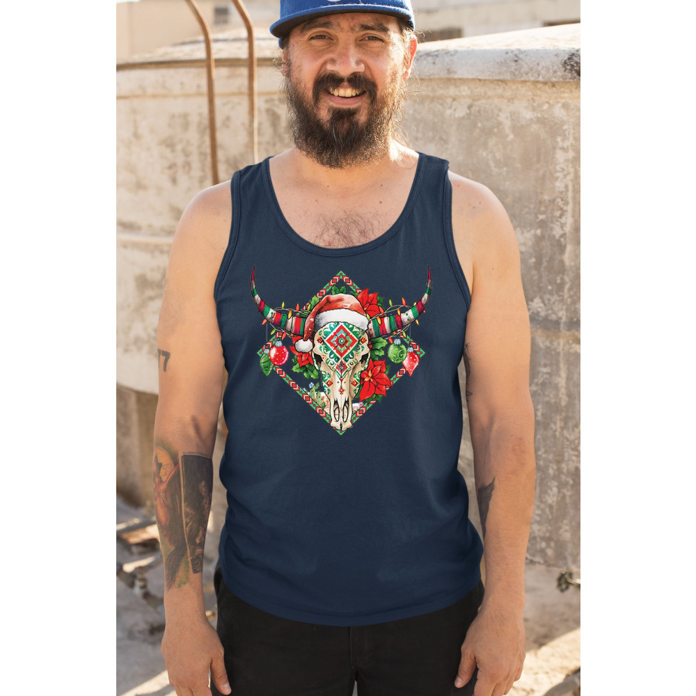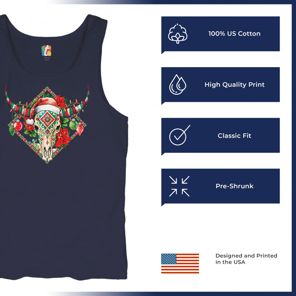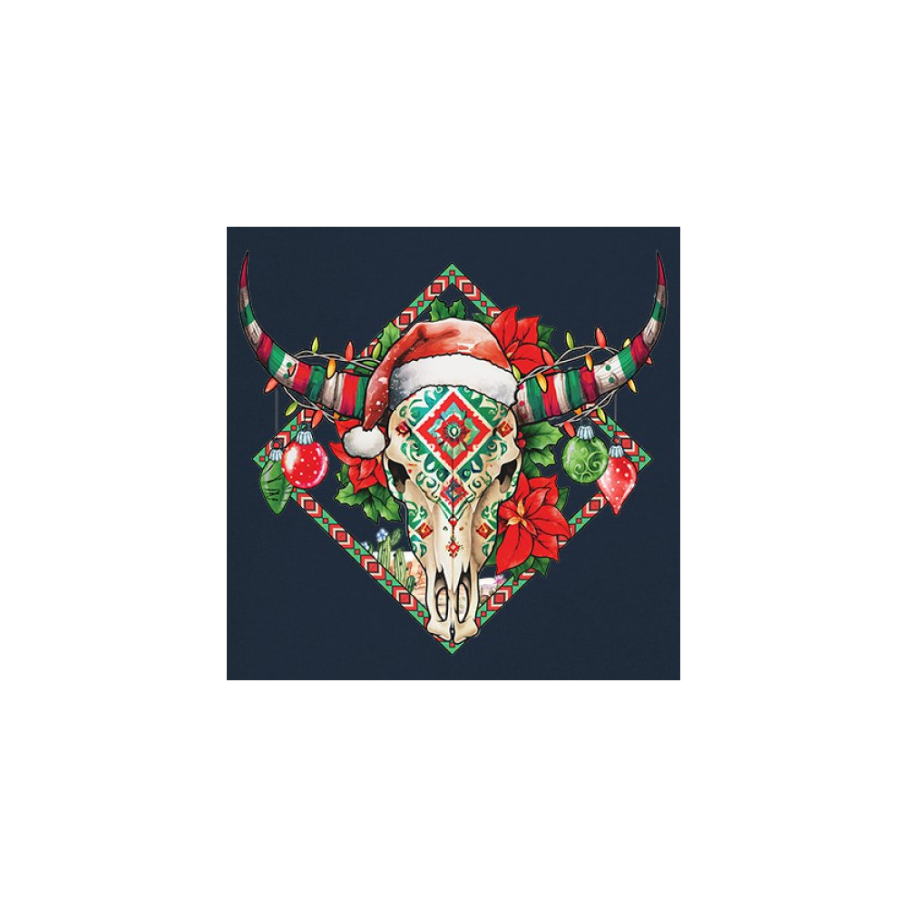 Blend Southwestern charm with holiday cheer! This vibrant skull design with poinsettias and ornaments is perfect for festive parties and unique gifts!