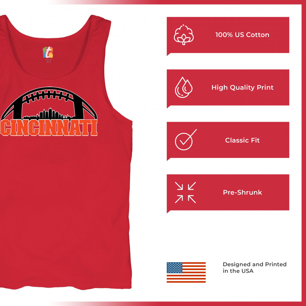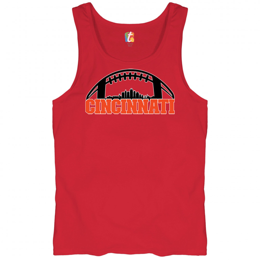 Celebrate Cincinnati and football with this bold skyline design under a football arch. Perfect for fans, tailgates, and game days!