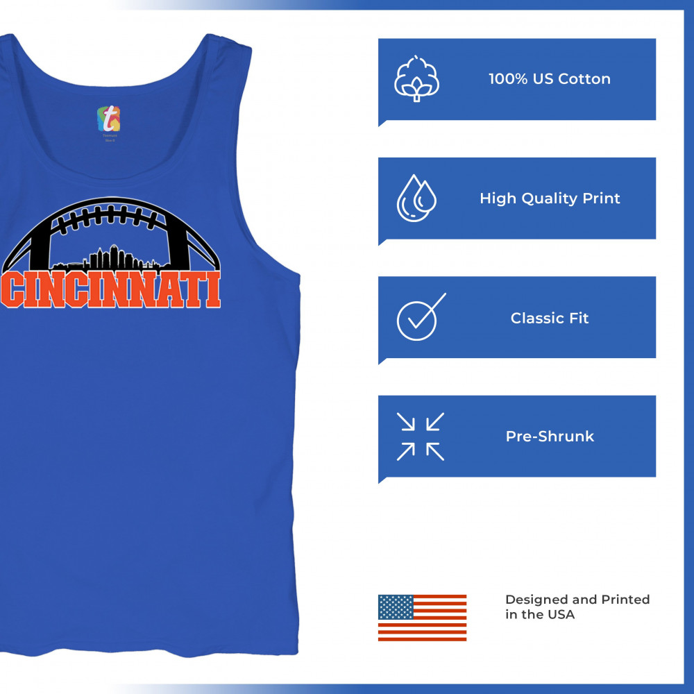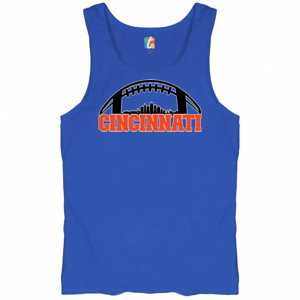 Discover the perfect blend of football passion and Cincinnati pride with this eye-catching design. Featuring the Queen City skyline under a bold football arch, this graphic is ideal for fans cheering on their team or celebrating their love for the city. Whether at a tailgate, game, or casual outing, this design lets you show your loyalty in style. A thoughtful gift for Cincinnati football enthusiasts!