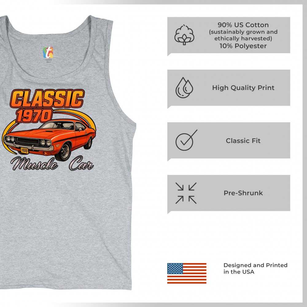 Show your pride for American muscle with this bold 1970 design featuring a classic orange coupe in retro detail. Perfect for gearheads, vintage car lovers, and collectors who live for the sound of old-school performance. A tribute to the raw attitude and street dominance of 1970 muscle.