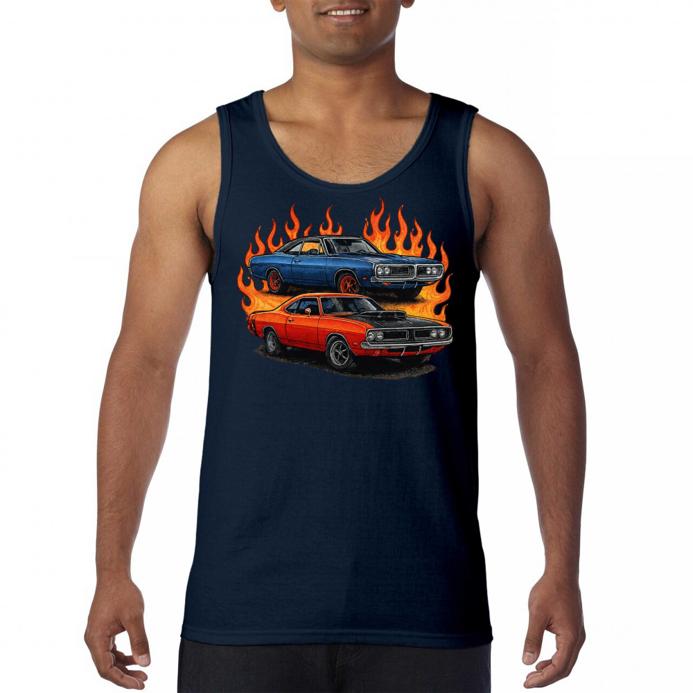 This flame-wrapped design showcases two classic muscle cars set ablaze with attitude, style, and vintage horsepower. Made for adrenaline seekers, rev heads, and car lovers who thrive on raw speed and retro fire. Whether at a burnout meet or a car show, this design lets your muscle car pride burn bright.