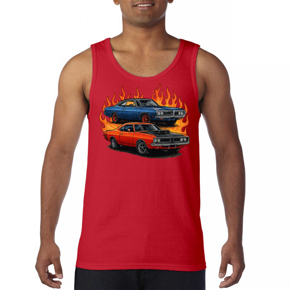 This flame-wrapped design showcases two classic muscle cars set ablaze with attitude, style, and vintage horsepower. Made for adrenaline seekers, rev heads, and car lovers who thrive on raw speed and retro fire. Whether at a burnout meet or a car show, this design lets your muscle car pride burn bright.