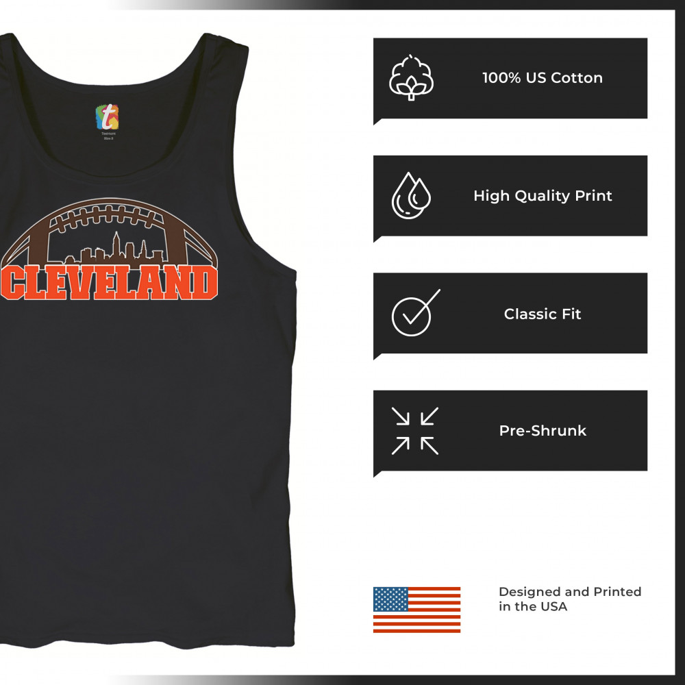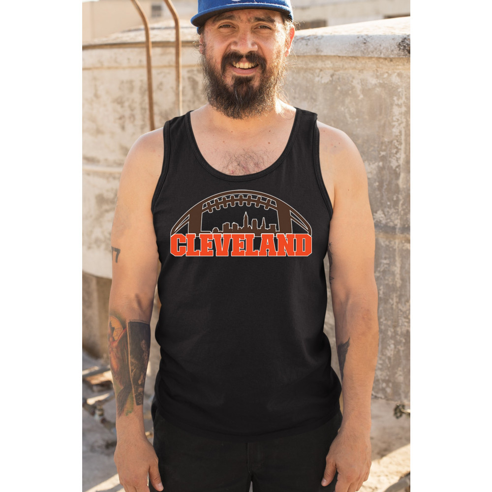 Unleash your Cleveland spirit with this standout football-themed design, featuring the city's skyline in bold detail. Ideal for game day celebrations, tailgate parties, or casual wear, this design embodies the energy and pride of Cleveland's sports culture. Whether you're a lifelong fan or just love the city's vibe, this is a must-have for every Cleveland supporter.