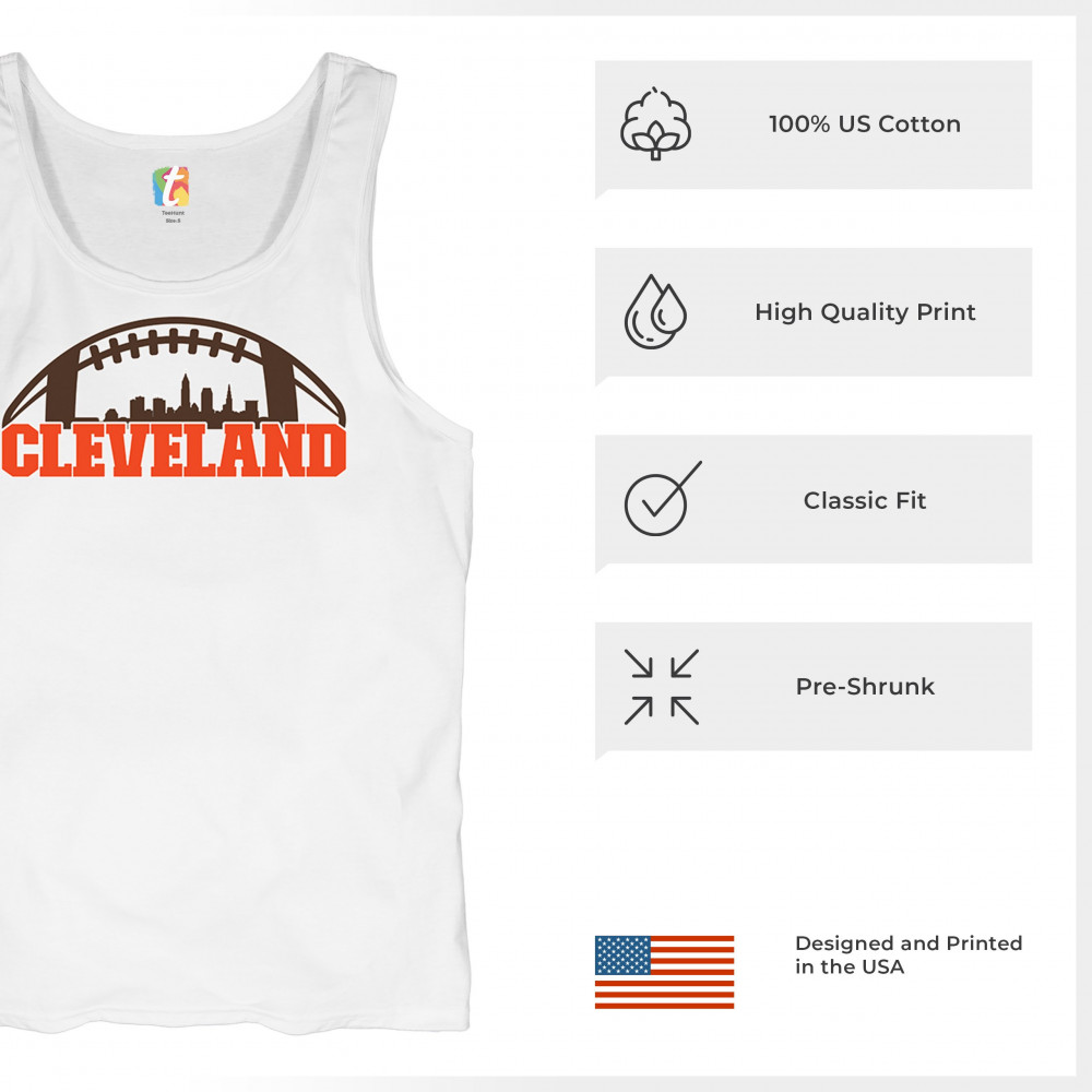 Unleash your Cleveland spirit with this standout football-themed design, featuring the city's skyline in bold detail. Ideal for game day celebrations, tailgate parties, or casual wear, this design embodies the energy and pride of Cleveland's sports culture. Whether you're a lifelong fan or just love the city's vibe, this is a must-have for every Cleveland supporter.