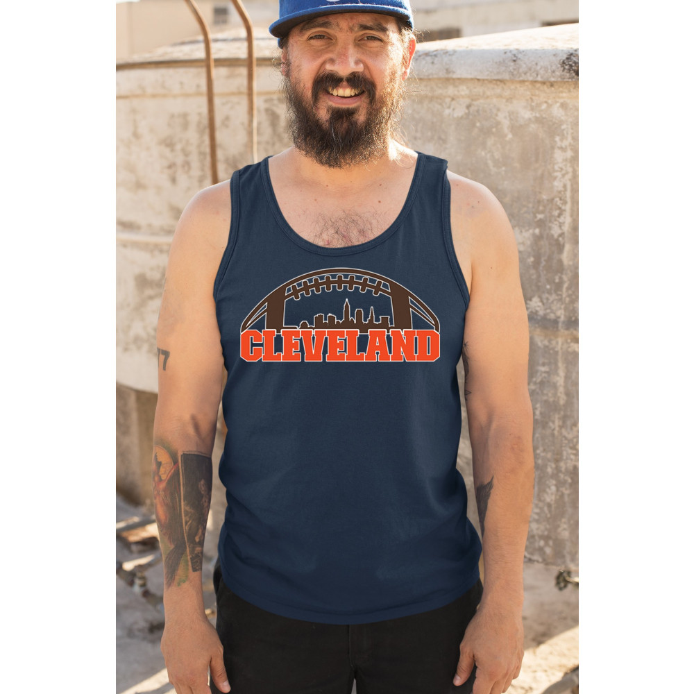 Unleash your Cleveland spirit with this standout football-themed design, featuring the city's skyline in bold detail. Ideal for game day celebrations, tailgate parties, or casual wear, this design embodies the energy and pride of Cleveland's sports culture. Whether you're a lifelong fan or just love the city's vibe, this is a must-have for every Cleveland supporter.