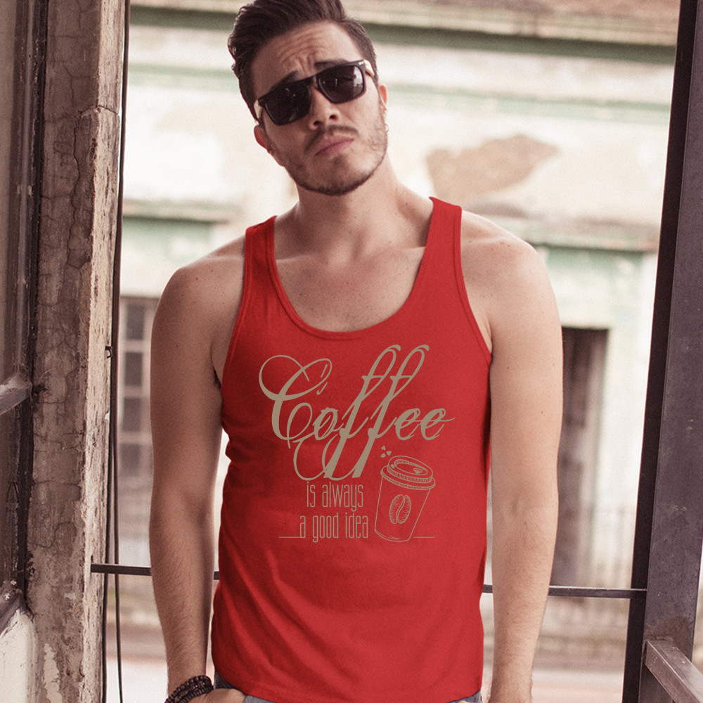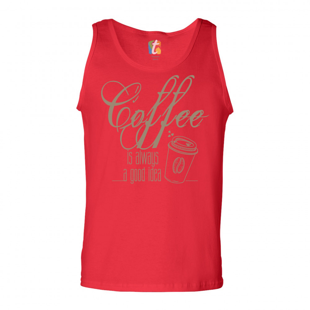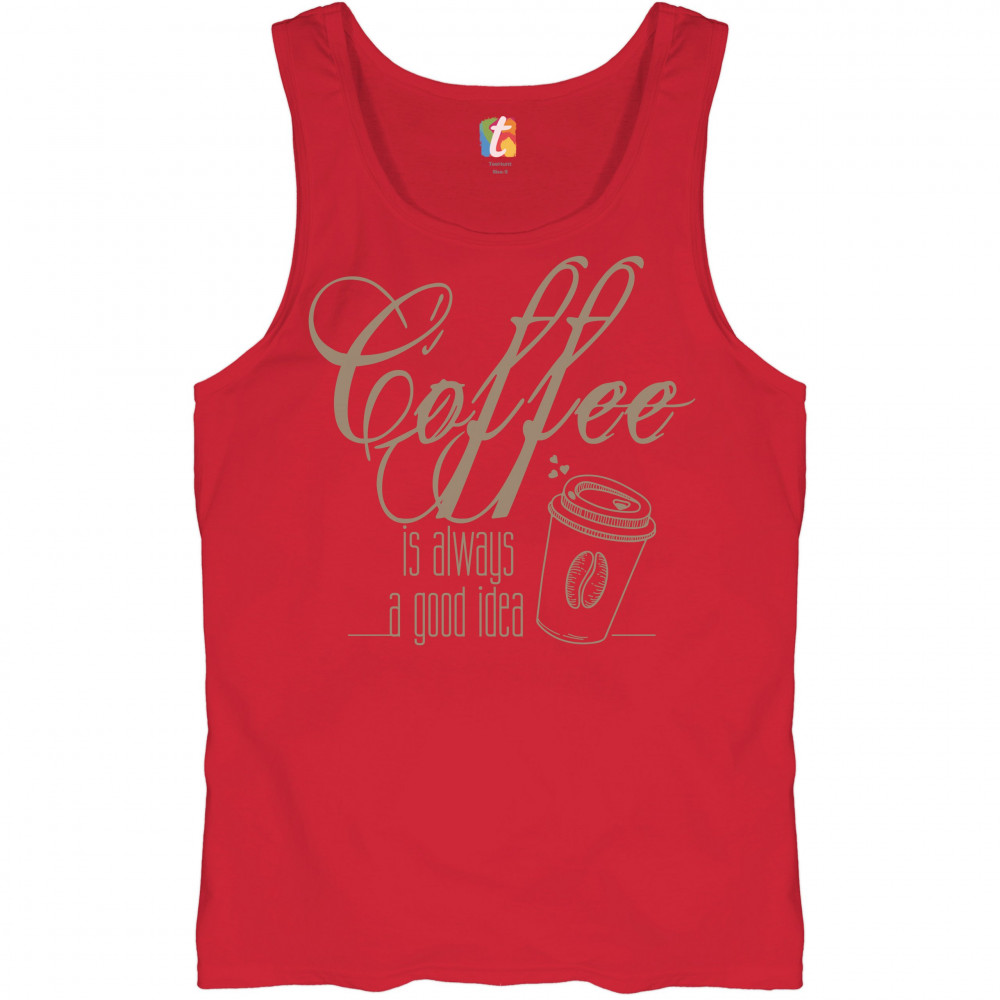 A print saying "Coffee is always a good idea". The print features a picture of a paper cup of tea with a coffee bean on it and with several hearts steaming from it. A great choice to wear to spread positive vibes and show what a passionate coffee fan you