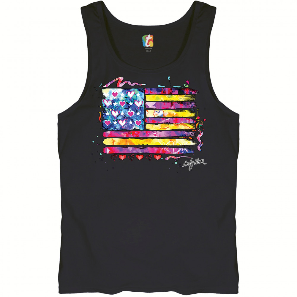 COLORFUL AMERICAN FLAG tank top patriotic 4th of july independence men's top black