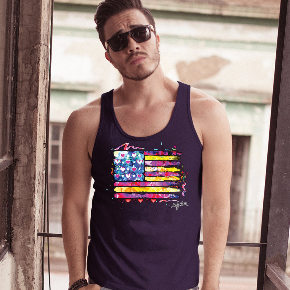 COLORFUL AMERICAN FLAG tank top patriotic 4th of july independence men's top navy blue