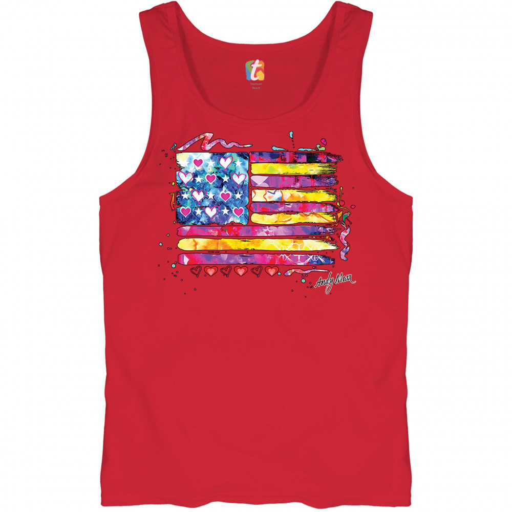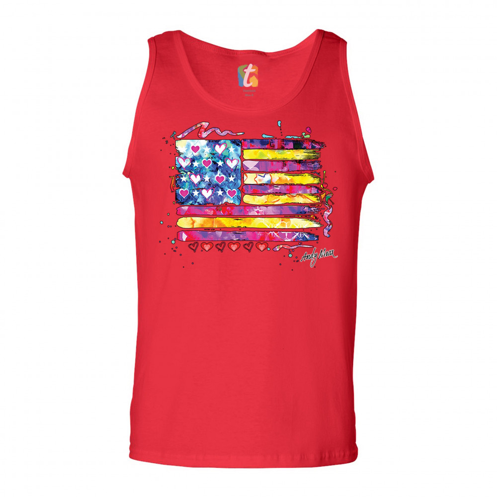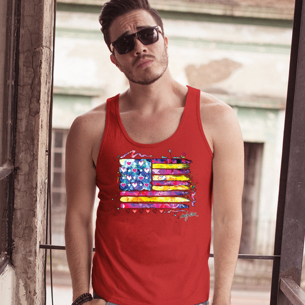 COLORFUL AMERICAN FLAG tank top patriotic 4th of july independence men's top red