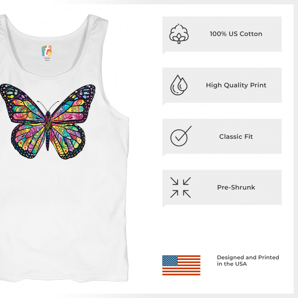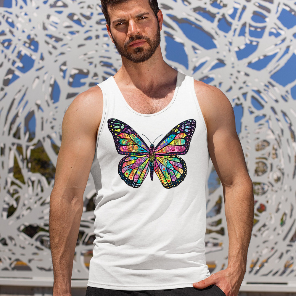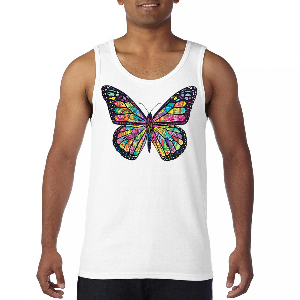 COLORFUL NEON BUTTERFLY tank top dean russo beautiful nature men's top white