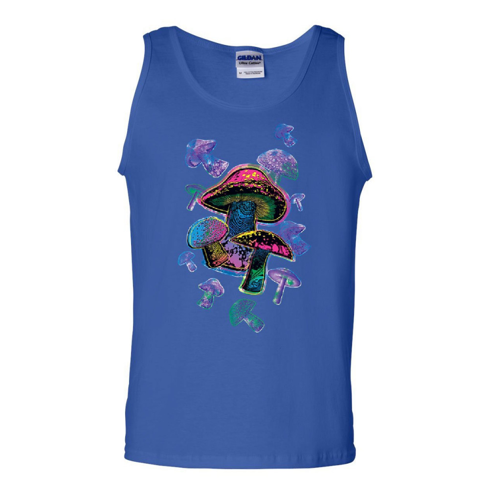 NEON MUSHROOMS colorful tank top shrooms psychedelic psilocybin sleeveless blue