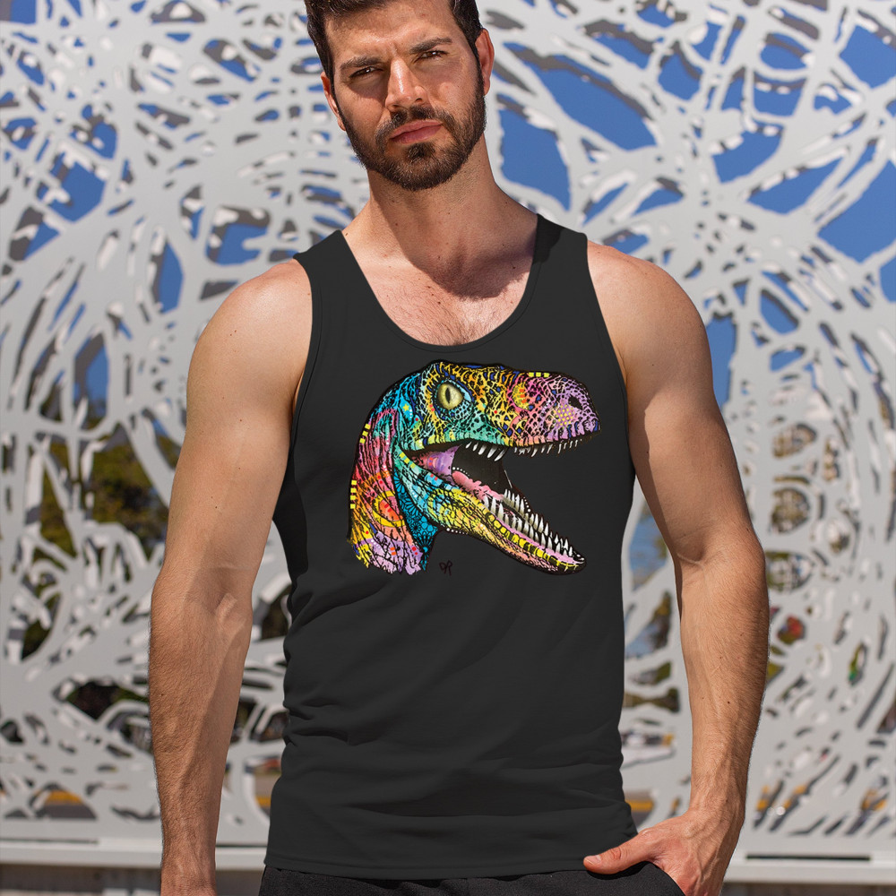 COLORFUL RAPTOR tank top dean russo neon jurassic dinosaur men's top black
