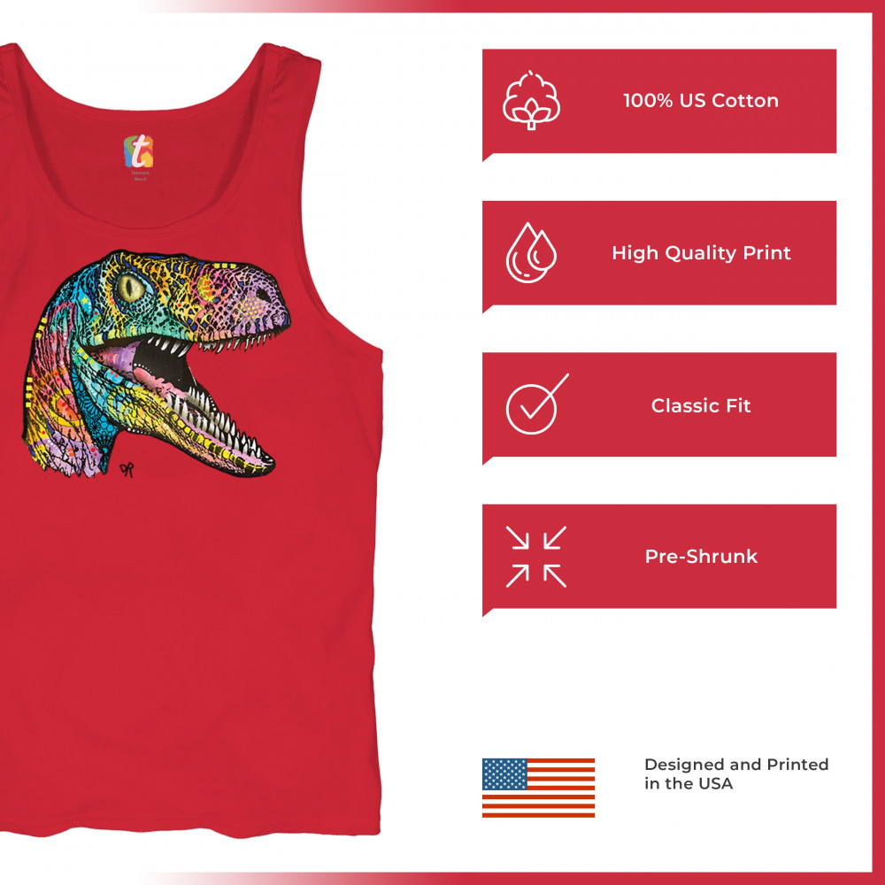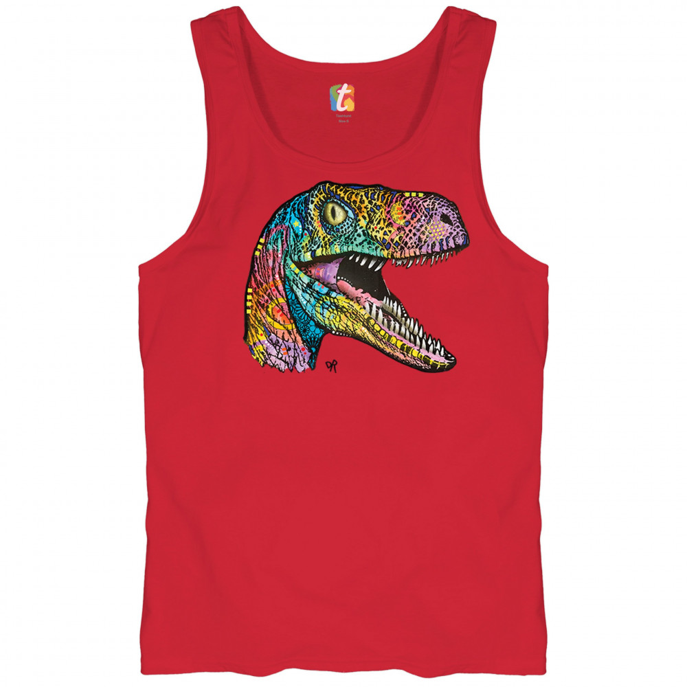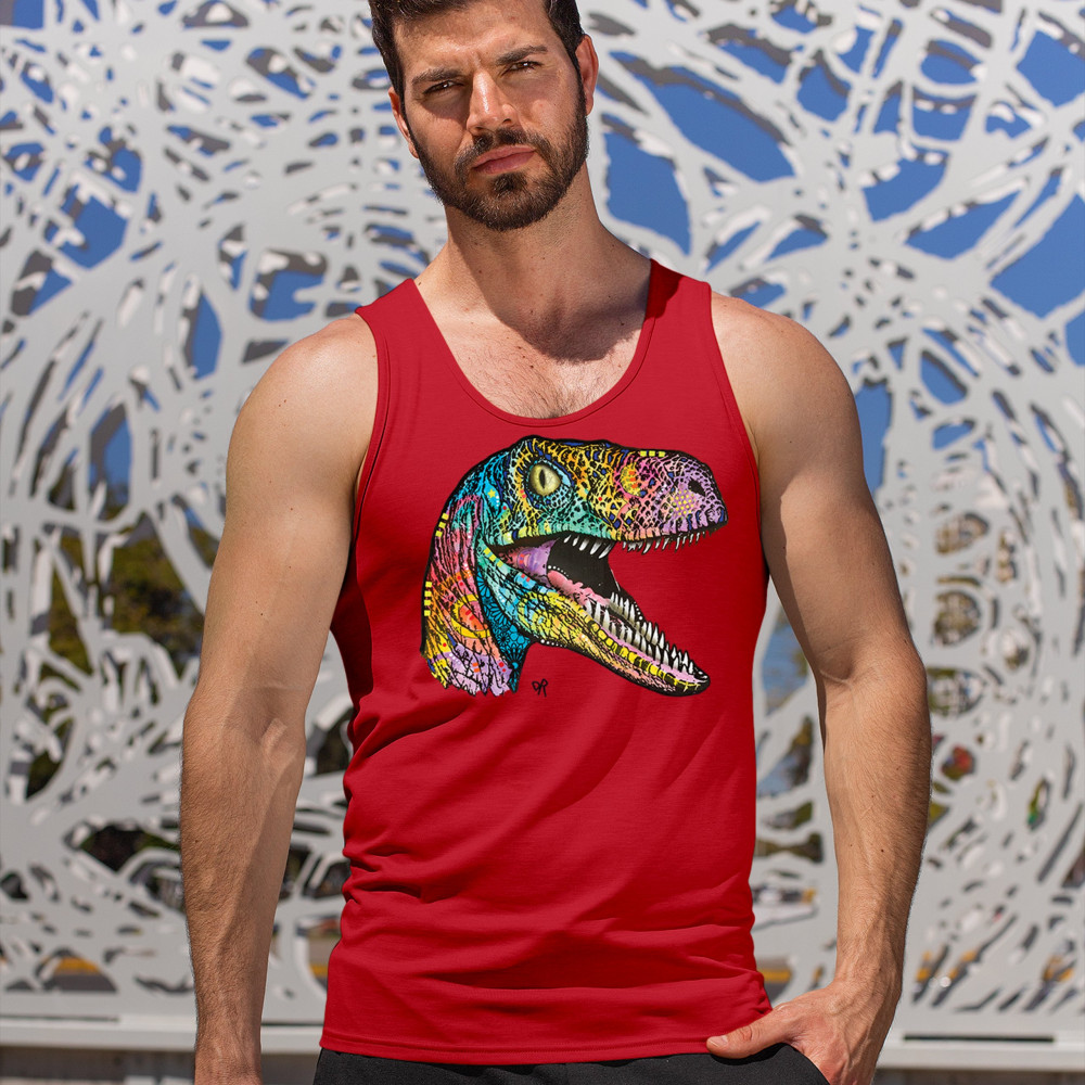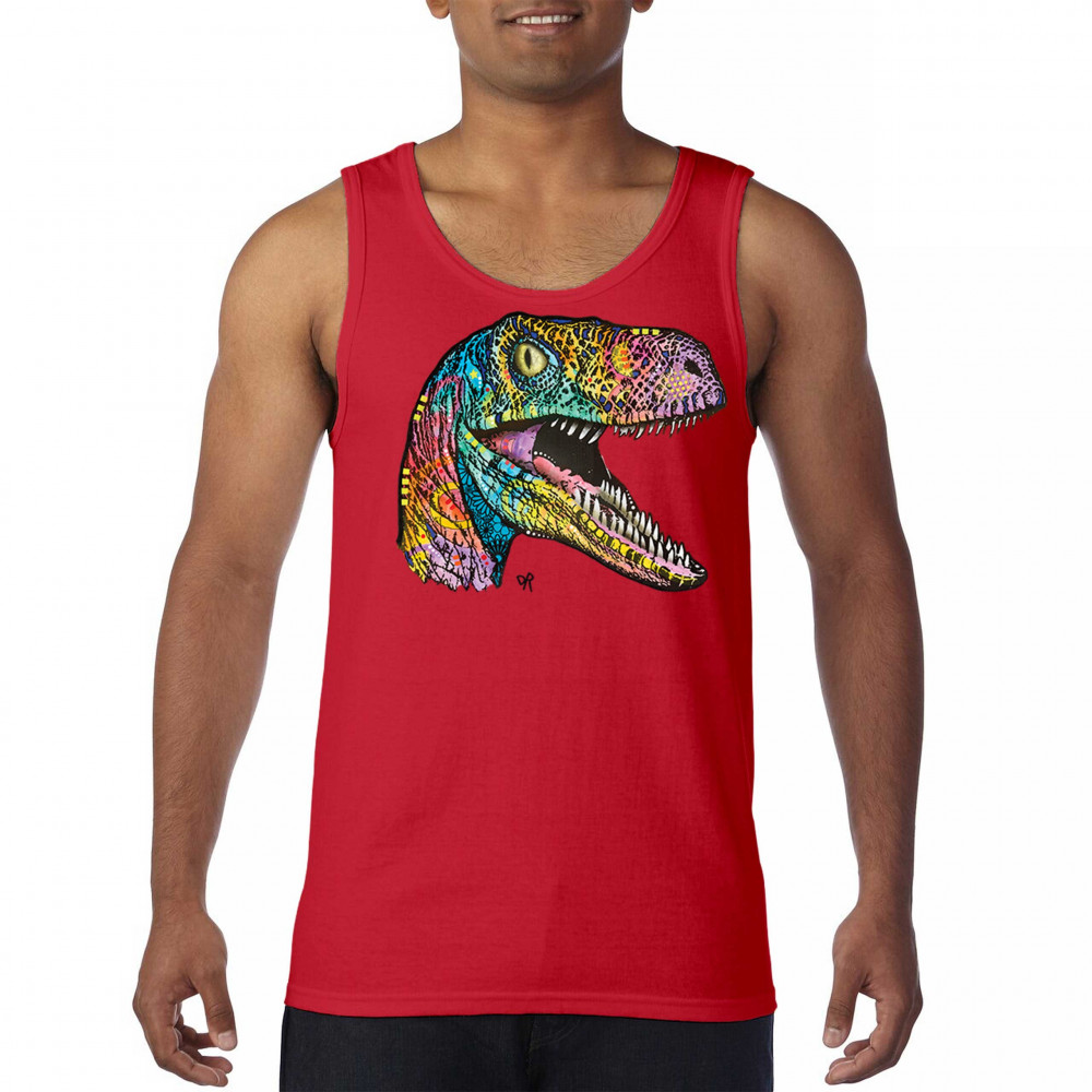 COLORFUL RAPTOR tank top dean russo neon jurassic dinosaur men's top red