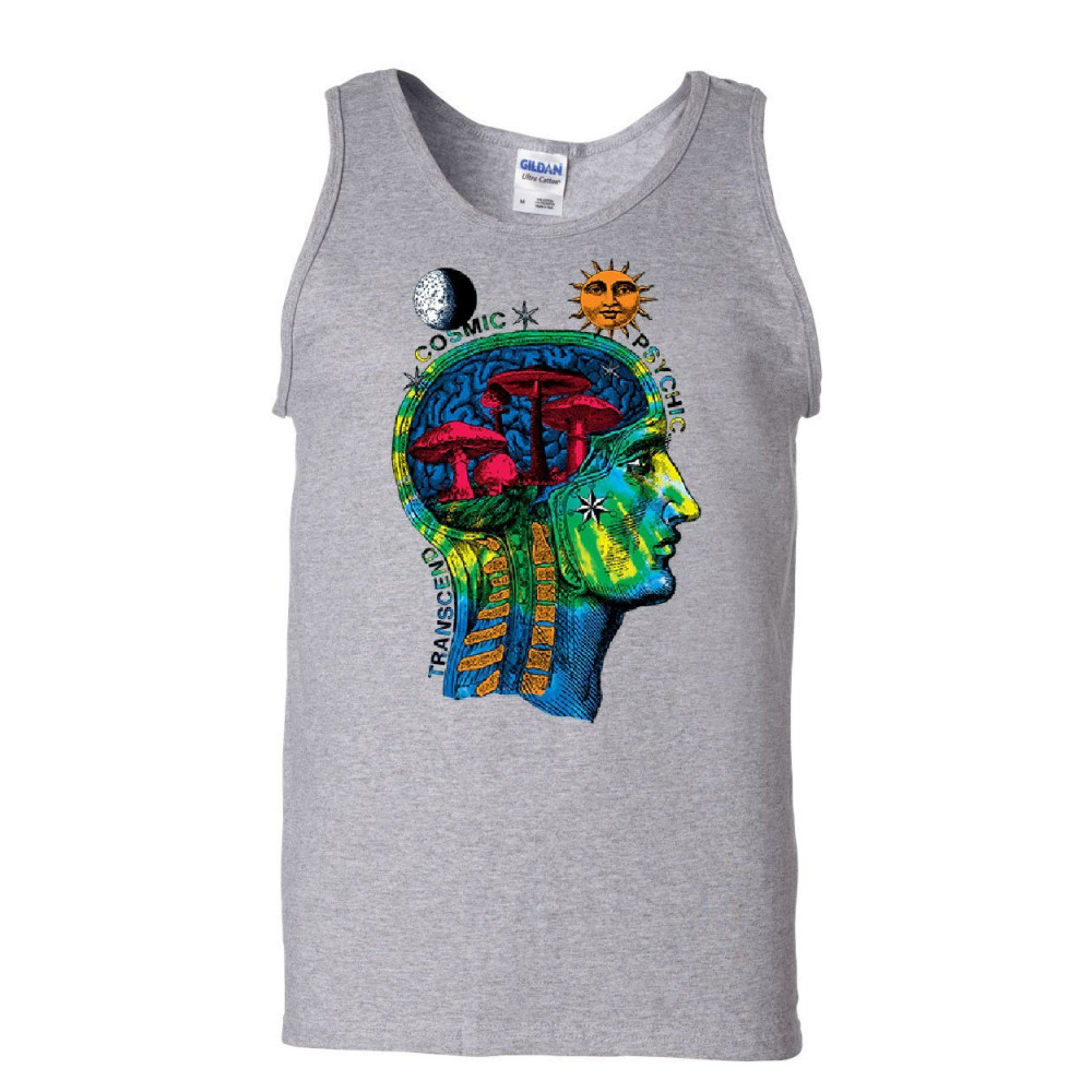 MUSHROOM HEAD cosmic psychic transcend tank top psychedelic trippy weird space sleeveless gray