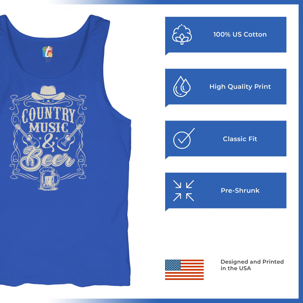 Country music and beer unite in this rustic design with cowboy hat, guitars, and scrollwork. Great for rodeos, festivals, and southern pride.