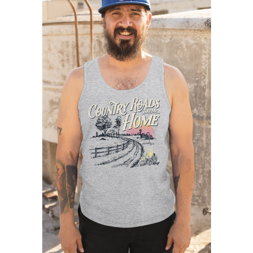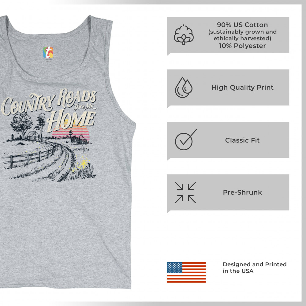 Celebrate your love for small town charm and scenic drives with this nostalgic country roads design. Featuring a bold "Take Me Home" message over a retro-styled sunset, it’s ideal for road trips, summer nights, fairs, concerts, and rural adventures. Let your wanderlust and country soul shine in every mile.