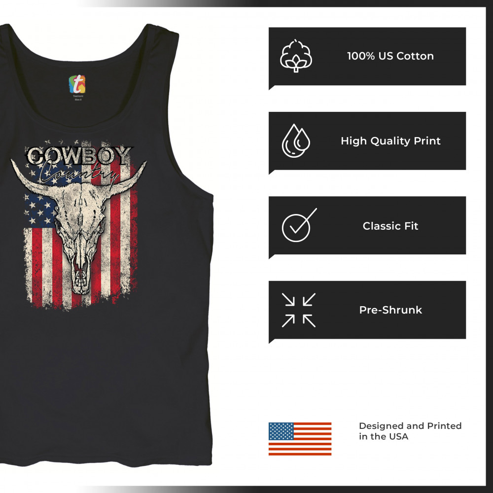 Cowboy Country steer skull design fuses rustic Americana, rodeo style, western heritage, and desert vibes for true frontier spirit.