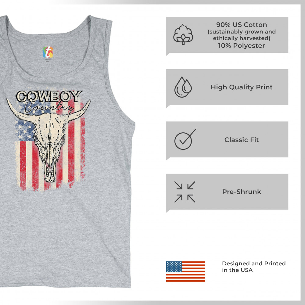 Celebrate western heritage with the Cowboy Country steer skull design, layered over a distressed American flag. This artwork embodies rustic Americana, rodeo style, and desert vibes. Perfect for cowboy décor lovers, ranch life enthusiasts, and those drawn to the wild west’s grit and prairie aesthetic. Wear your frontier spirit proudly.