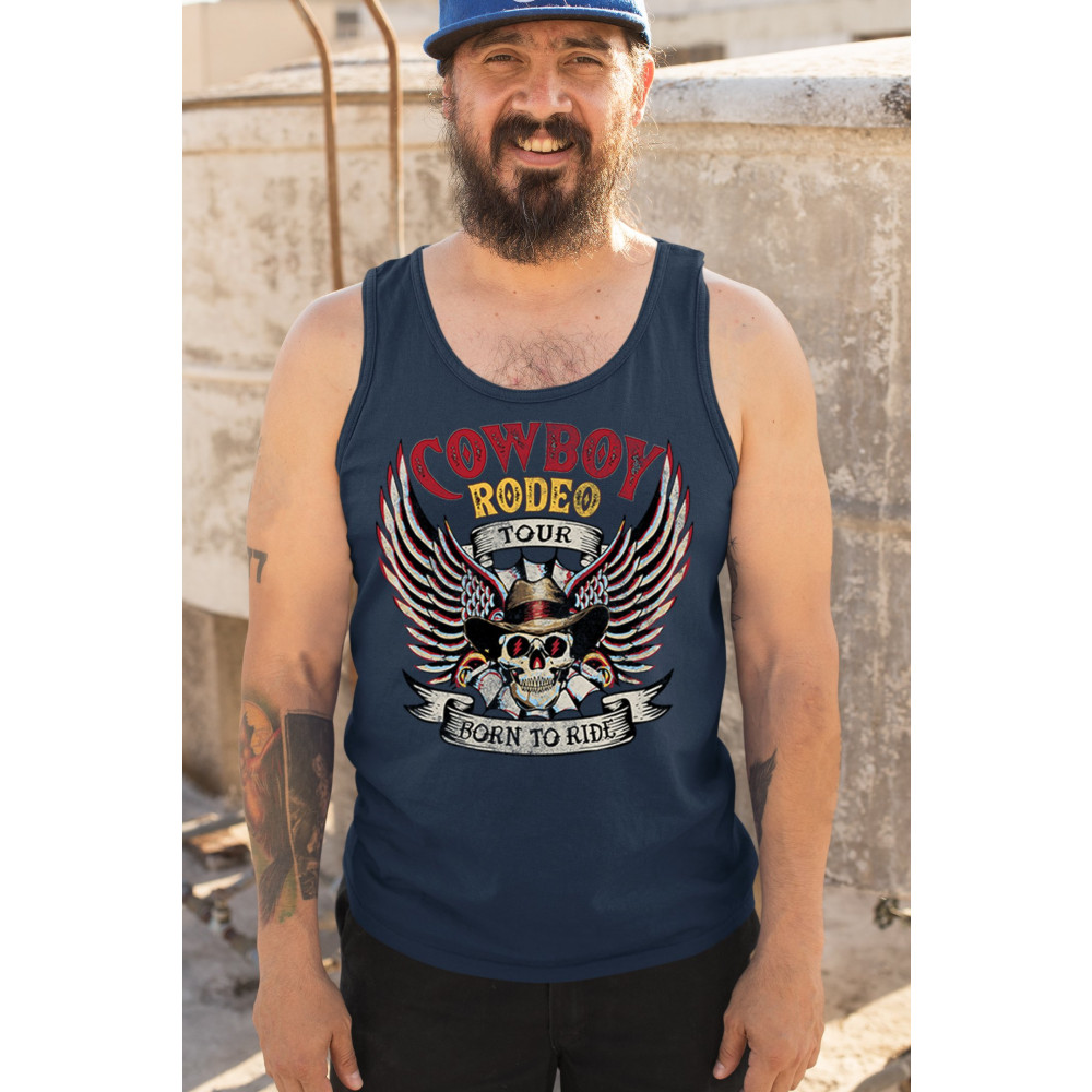 Cowboy Rodeo Tour “Born to Ride†design with skull, wings, and western grit. Built for riders, rebels, and rodeo fans who live wild.