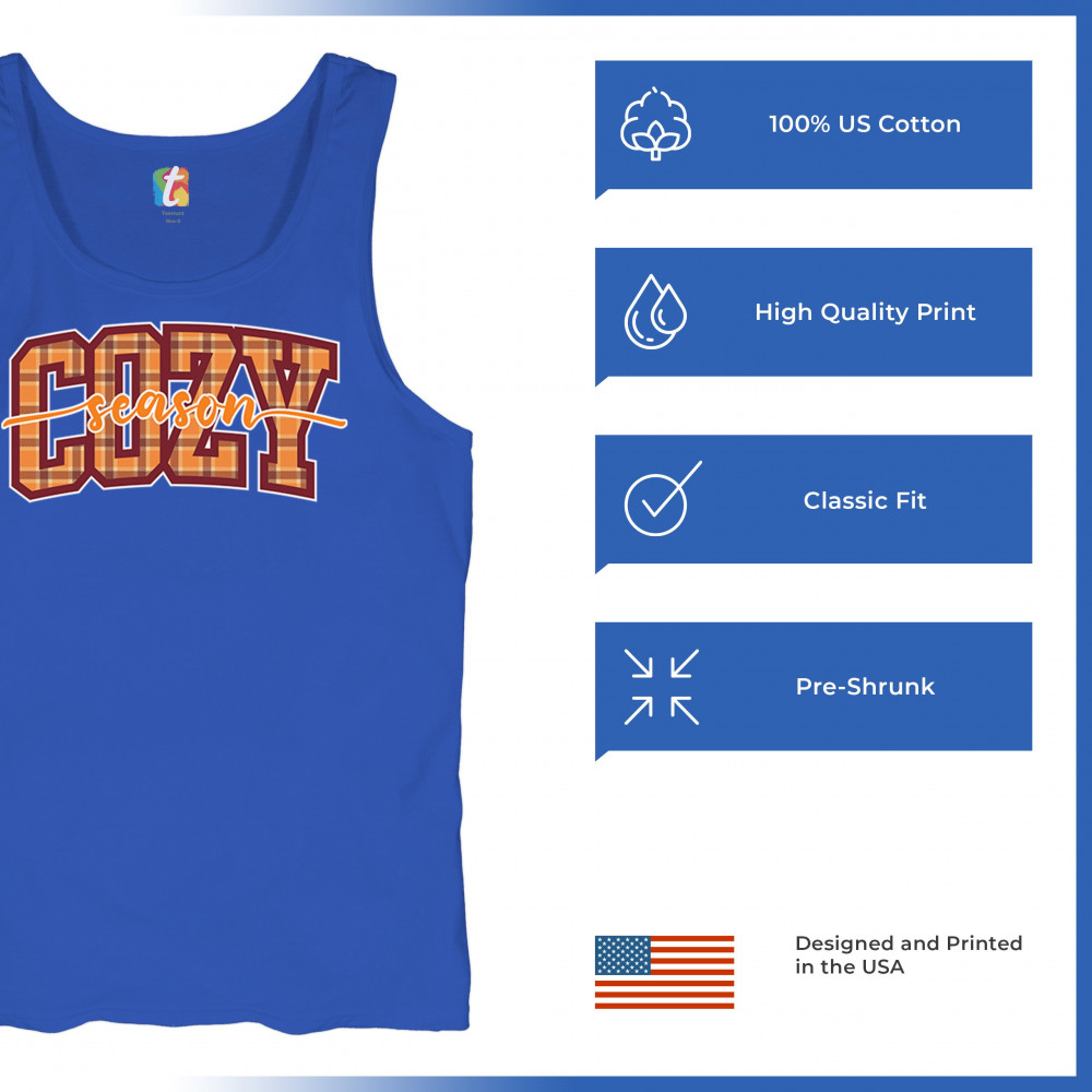 Celebrate fall with this "Cozy Season" plaid design. Perfect for autumn lovers who cherish cozy days, warm drinks, and the beauty of the season.
