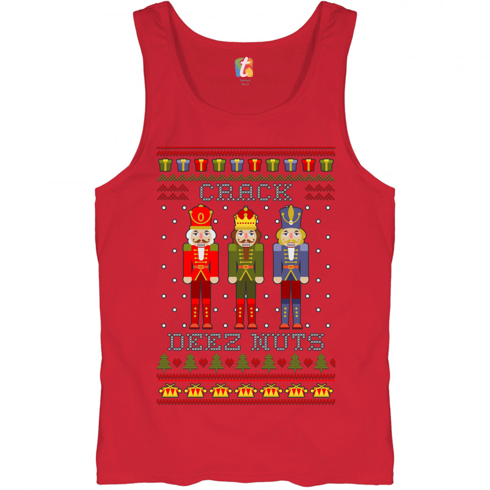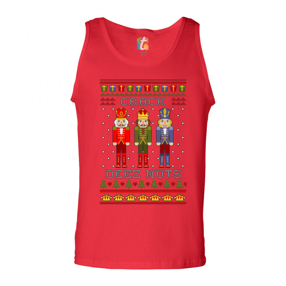 CRACK DEEZ NUTS tank top funny christmas nutcracker ugly sweater men's top red