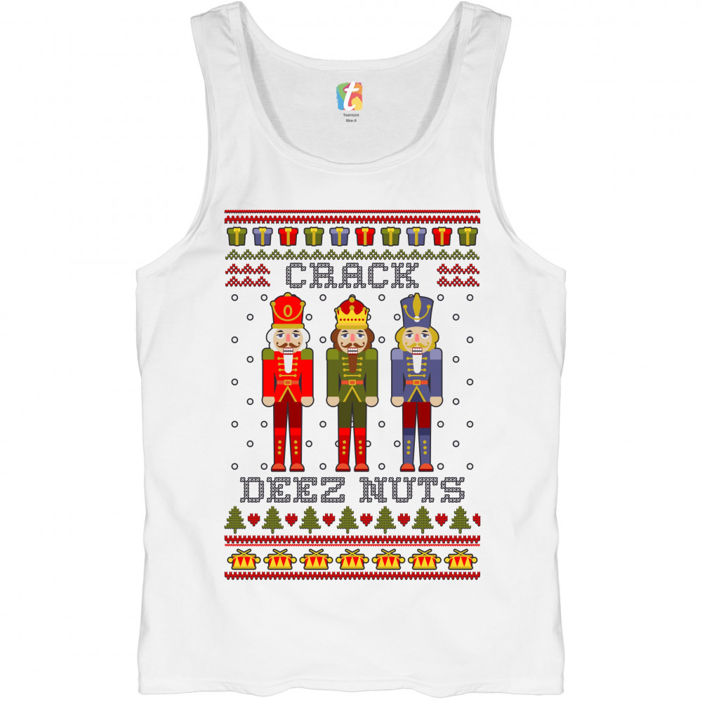 CRACK DEEZ NUTS tank top funny christmas nutcracker ugly sweater men's top white