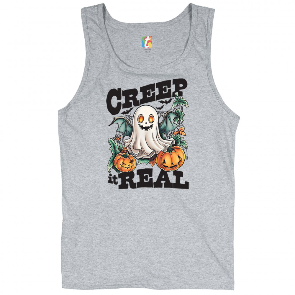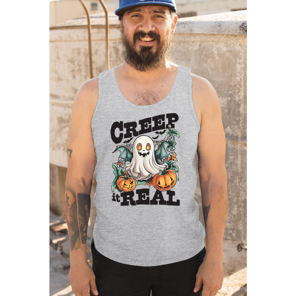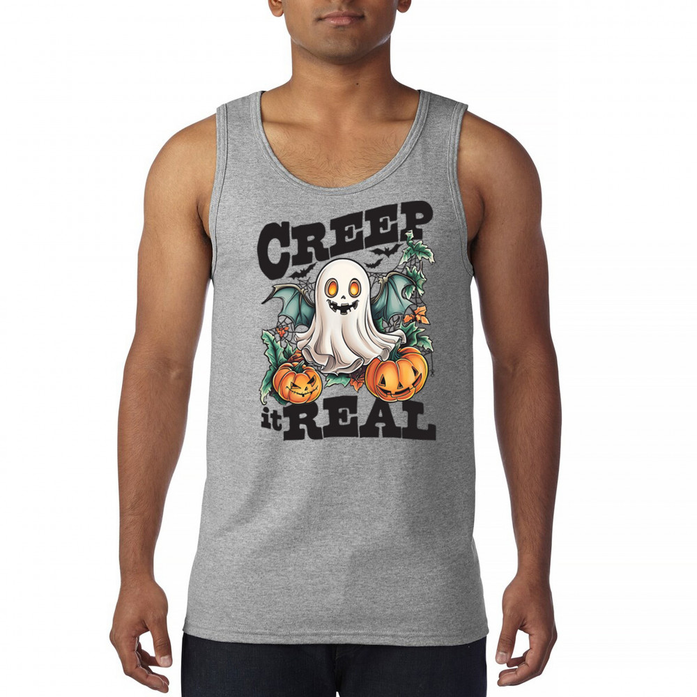 CREEP IT REAL tank top funny trick or treat ghost boo jack o lantern men's top gray