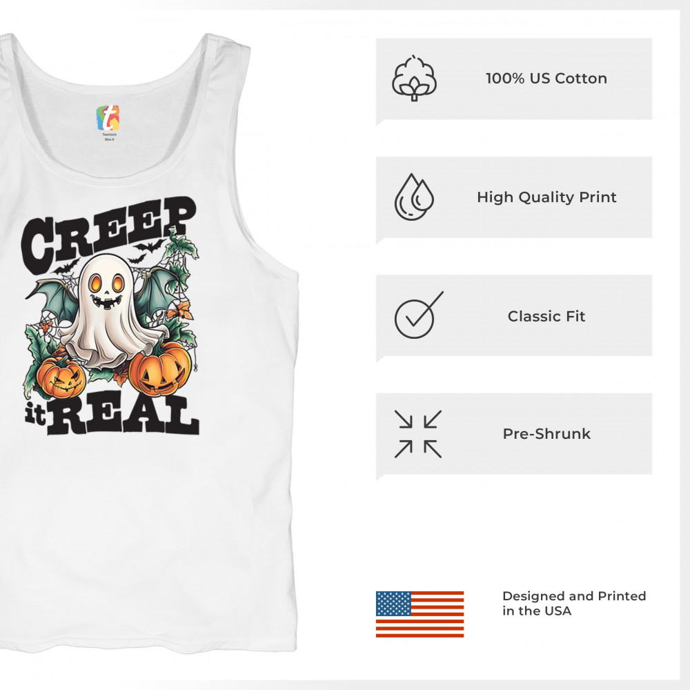 Celebrate Halloween with this playful "Creep It Real" ghost design, perfect for fall activities, pumpkin patches, and spooky parties!