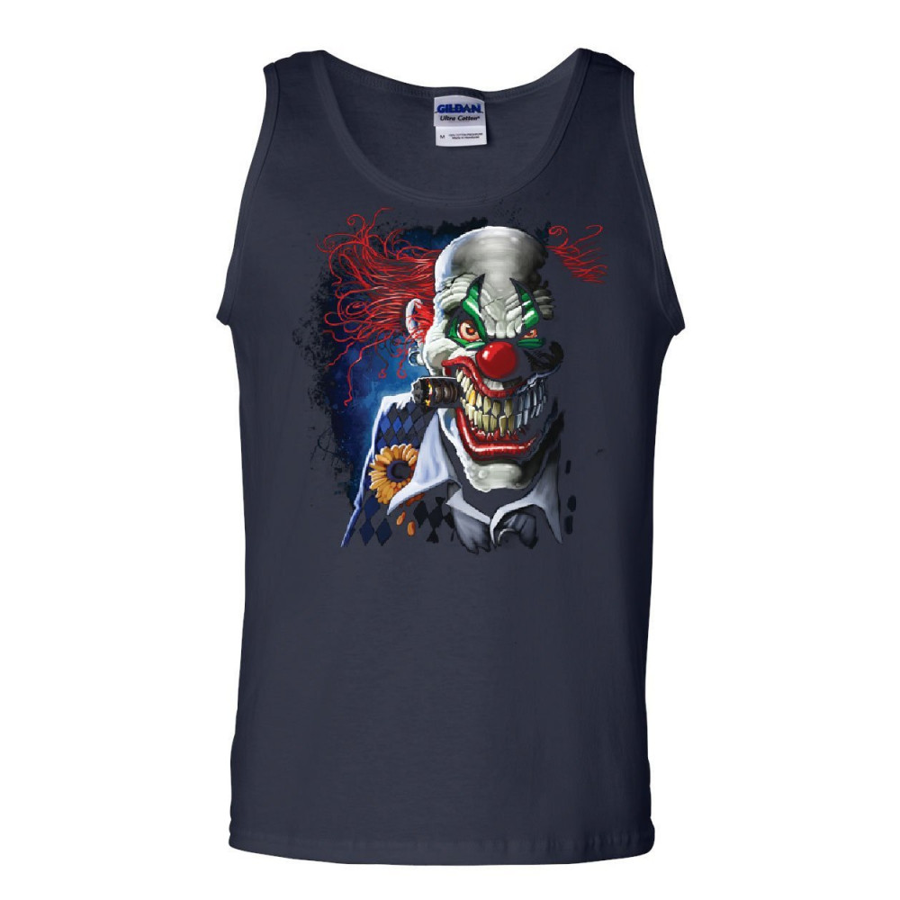 CREEPY JOKER CLOWN tank top nightmare scary mean killer halloween sleeveless navy blue
