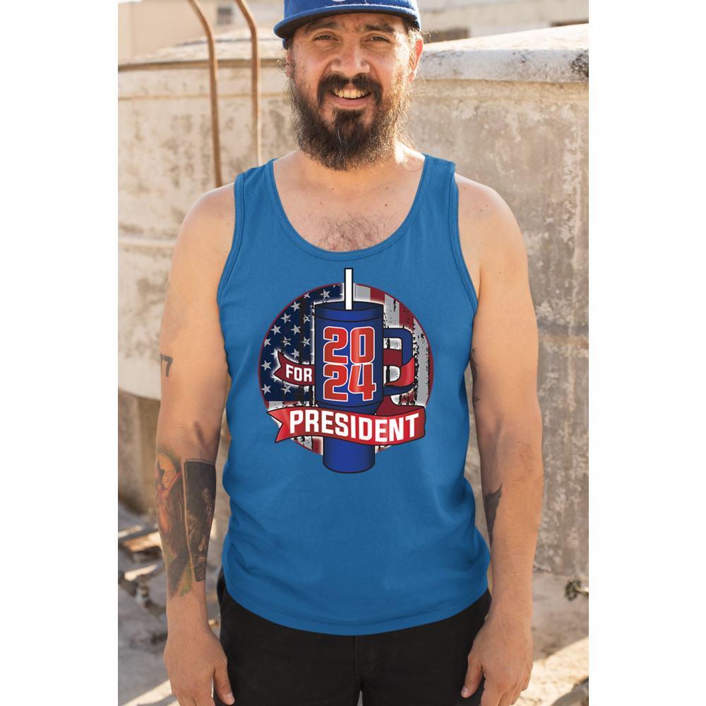 Celebrate the 2024 election season with a touch of humor with this clever design that parodies the popular water bottle craze. Perfect for those who enjoy political satire and want to make a statement, this design is ideal for casual wear, political rallies, and social gatherings. Show off your witty side with this playful and eye-catching graphic, and get ready to spark conversations and laughter wherever you go.