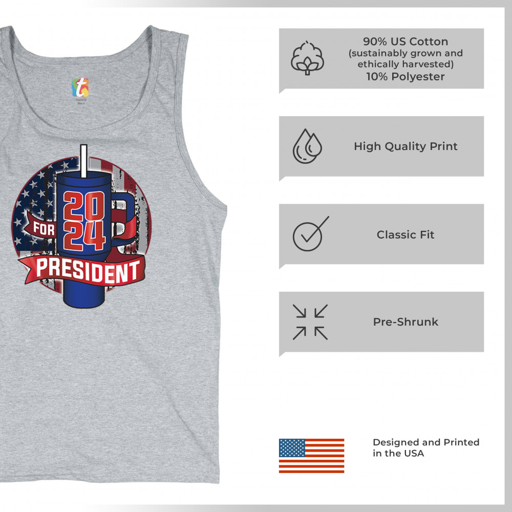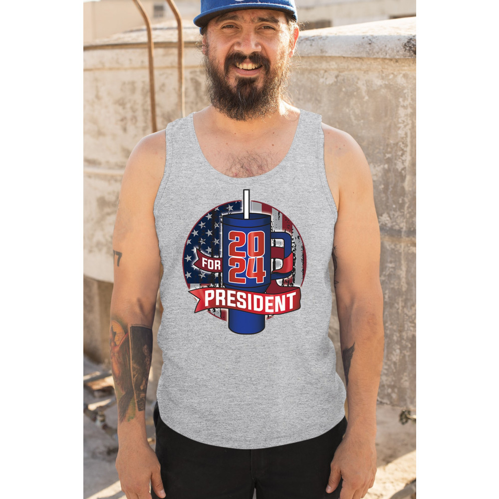 Celebrate the 2024 election season with a touch of humor with this clever design that parodies the popular water bottle craze. Perfect for those who enjoy political satire and want to make a statement, this design is ideal for casual wear, political rallies, and social gatherings. Show off your witty side with this playful and eye-catching graphic, and get ready to spark conversations and laughter wherever you go.