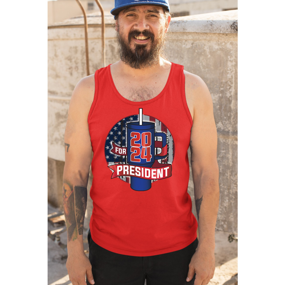 Celebrate the 2024 election season with a touch of humor with this clever design that parodies the popular water bottle craze. Perfect for those who enjoy political satire and want to make a statement, this design is ideal for casual wear, political rallies, and social gatherings. Show off your witty side with this playful and eye-catching graphic, and get ready to spark conversations and laughter wherever you go.