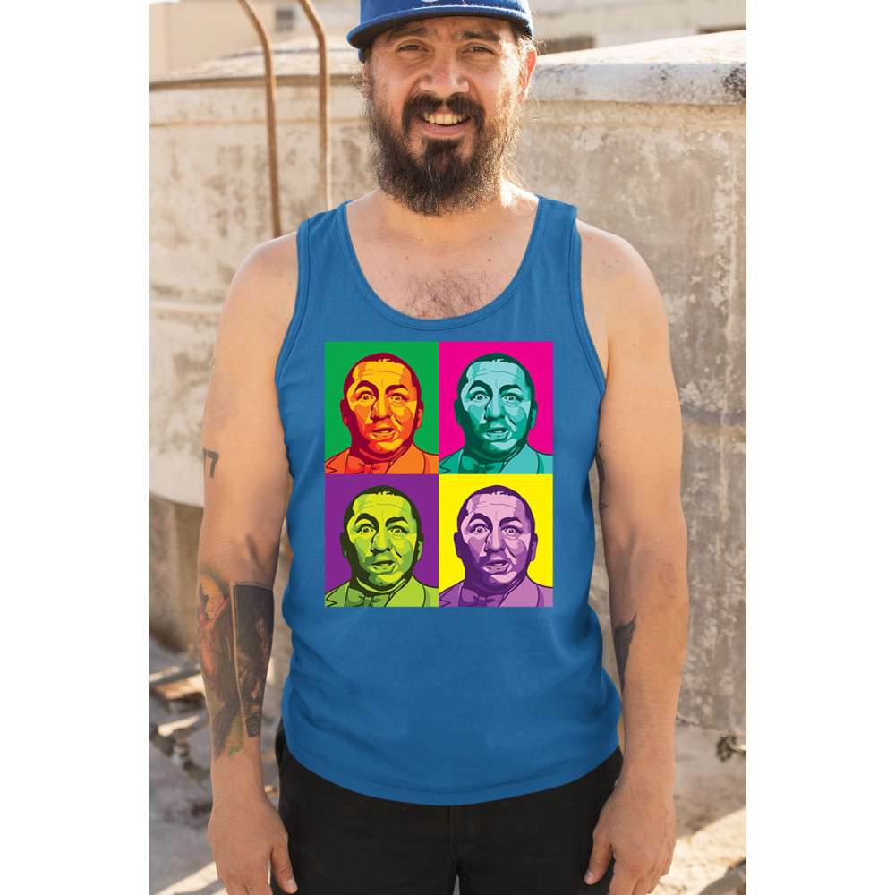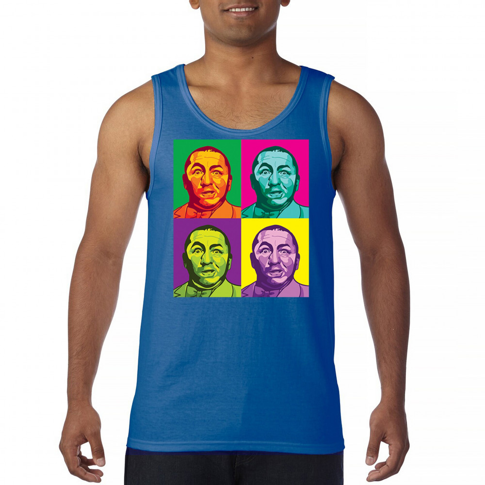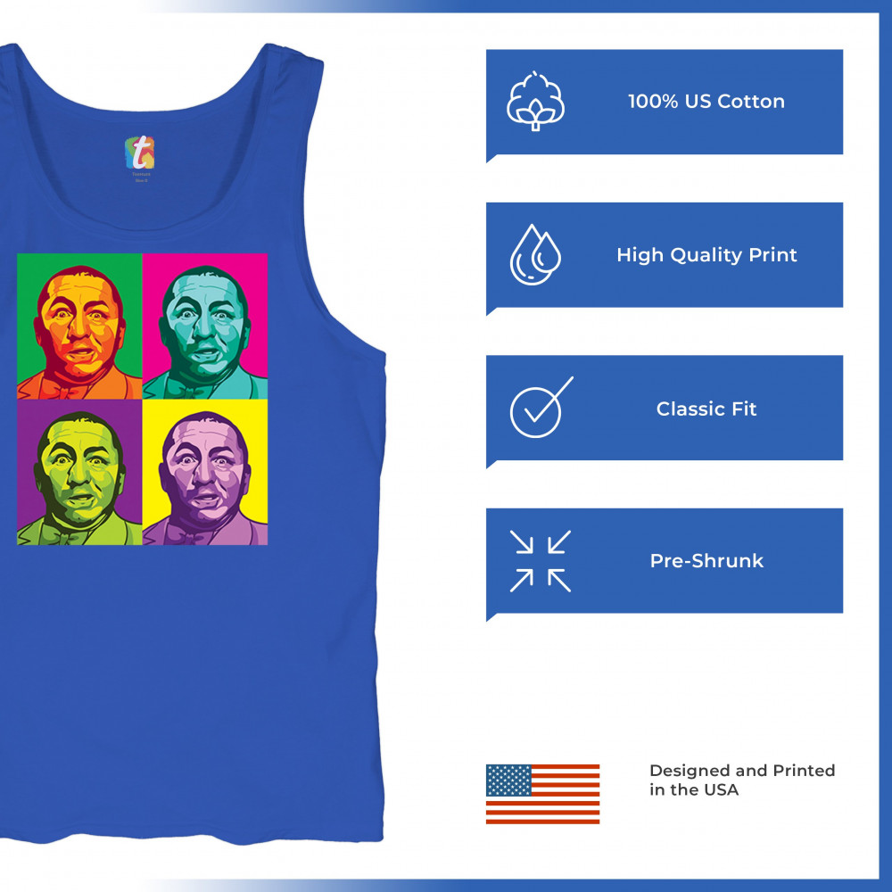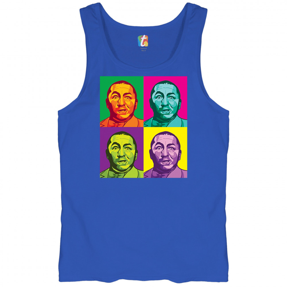 Introducing our dazzling pop art collection, headlined by the inimitable Curly of the Three Stooges! With a quartet of vivid hues, this T-shirt is a contemporary twist on classic humor. It's a standout piece for any fan's collection, capturing the timeless expression of Curly in a modern art style that's sure to turn heads and spark smiles.
