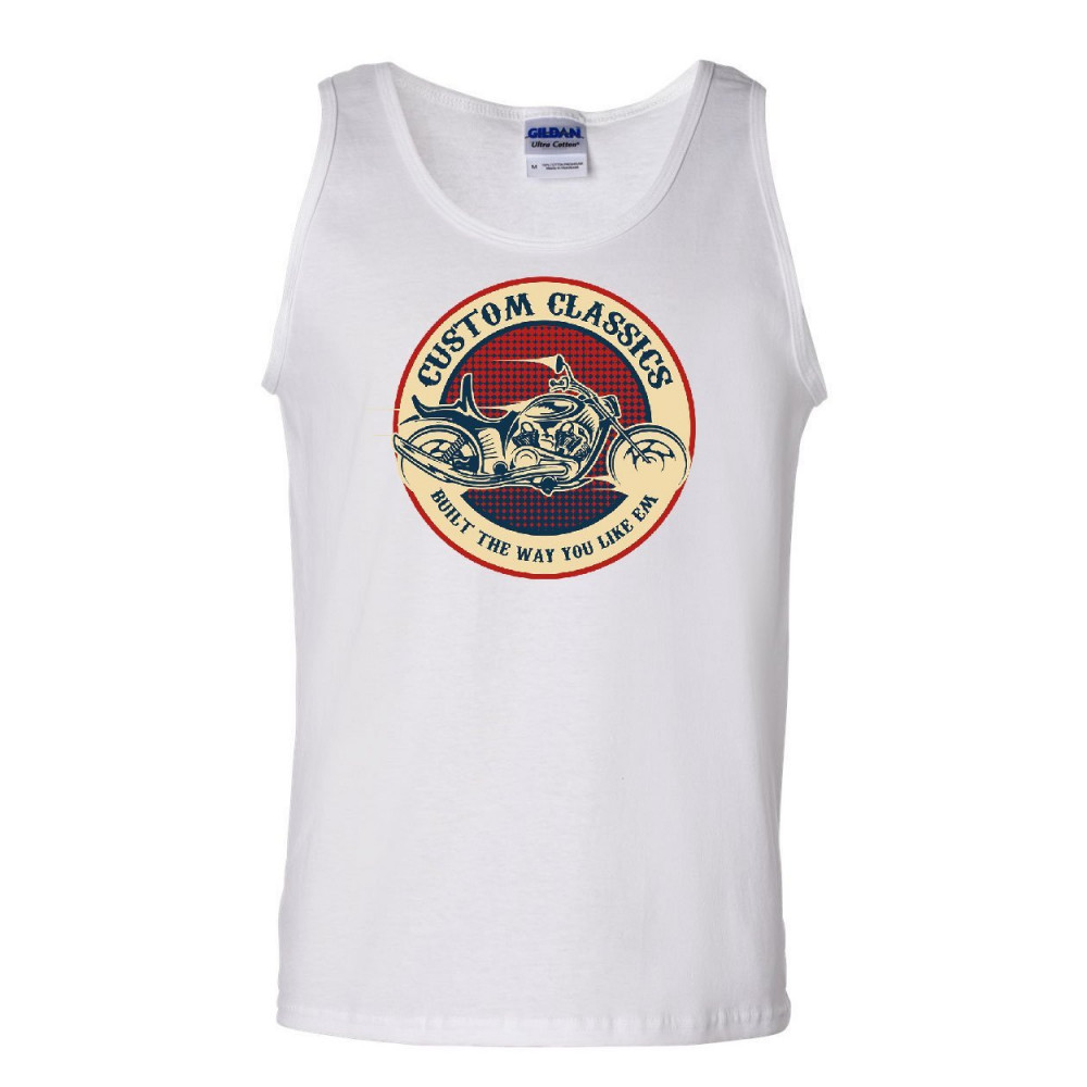 CUSTOM CLASSICS tank top chopper bobber biker rte 66 live to ride sleeveless white