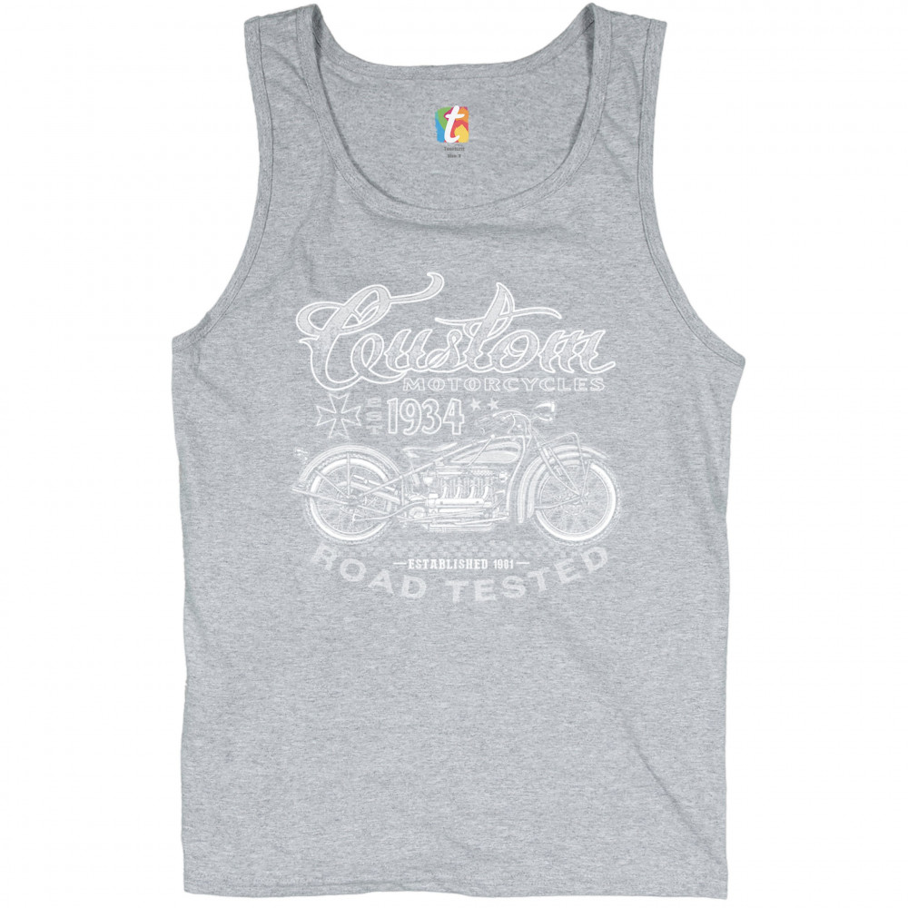 CUSTOM MOTORCYCLES ROAD TESTED tank top bobber biker gang mc men's top gray