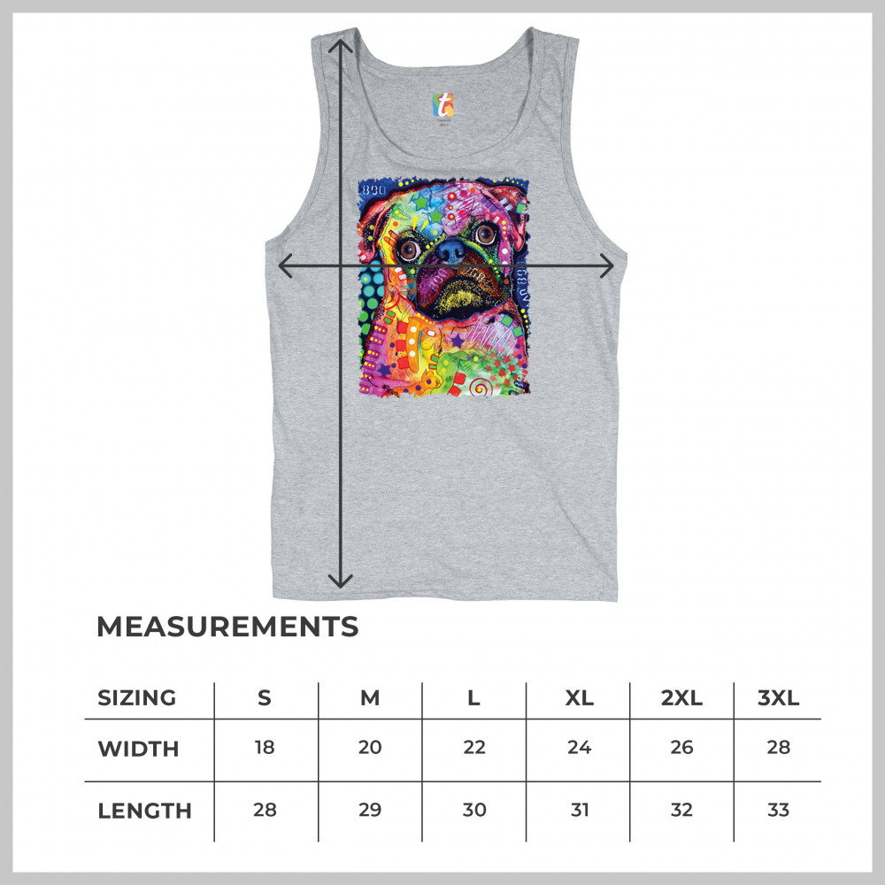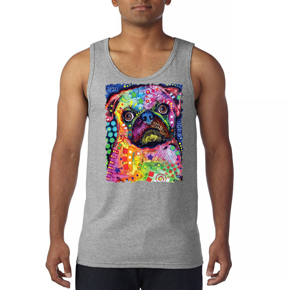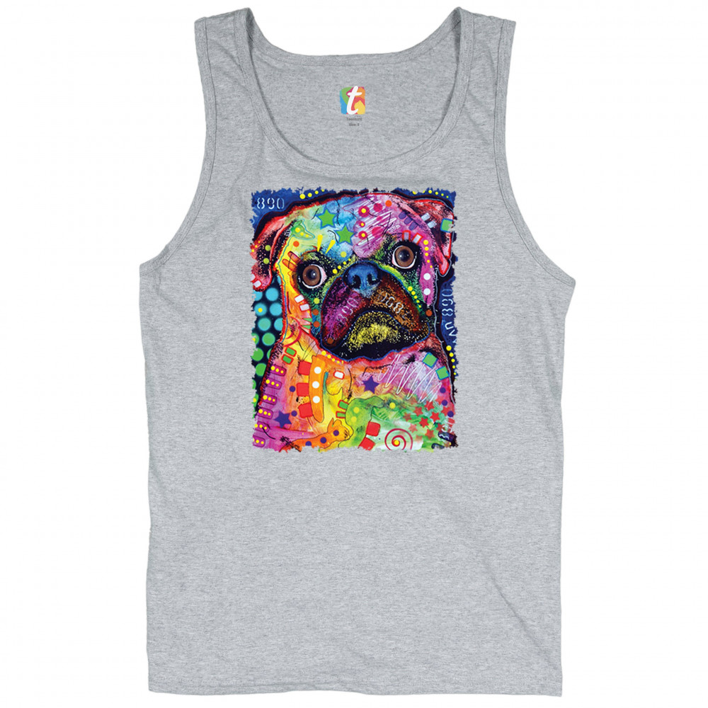 CUTE PUG PUPPY tank top dean russo colorful neon mosaic dog art men's top gray