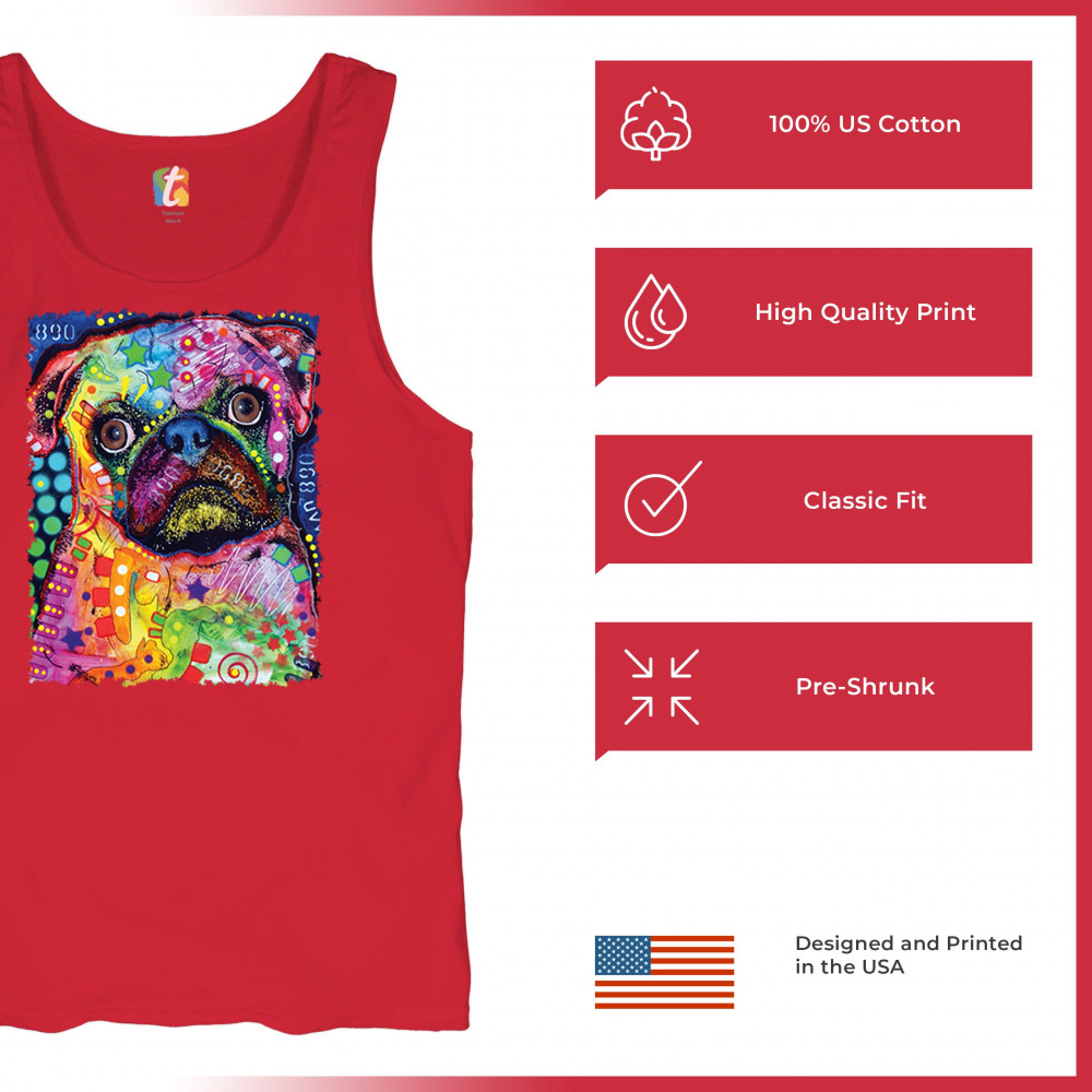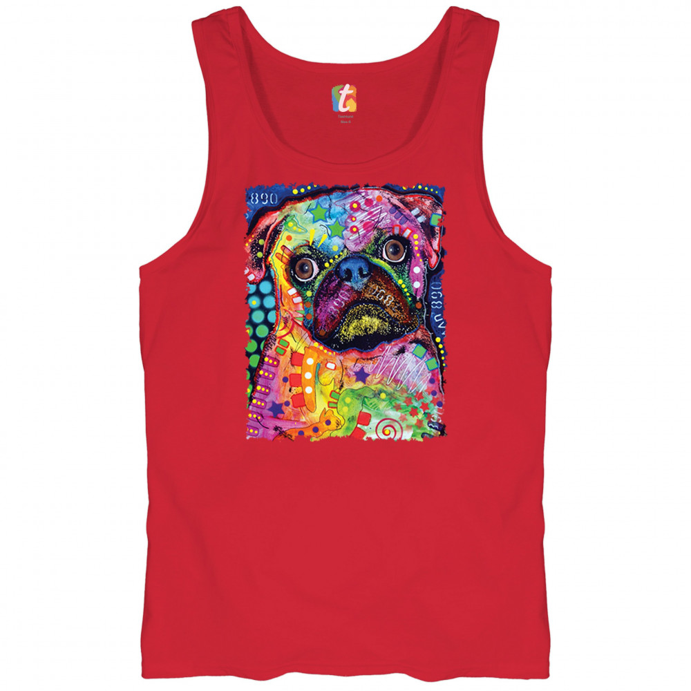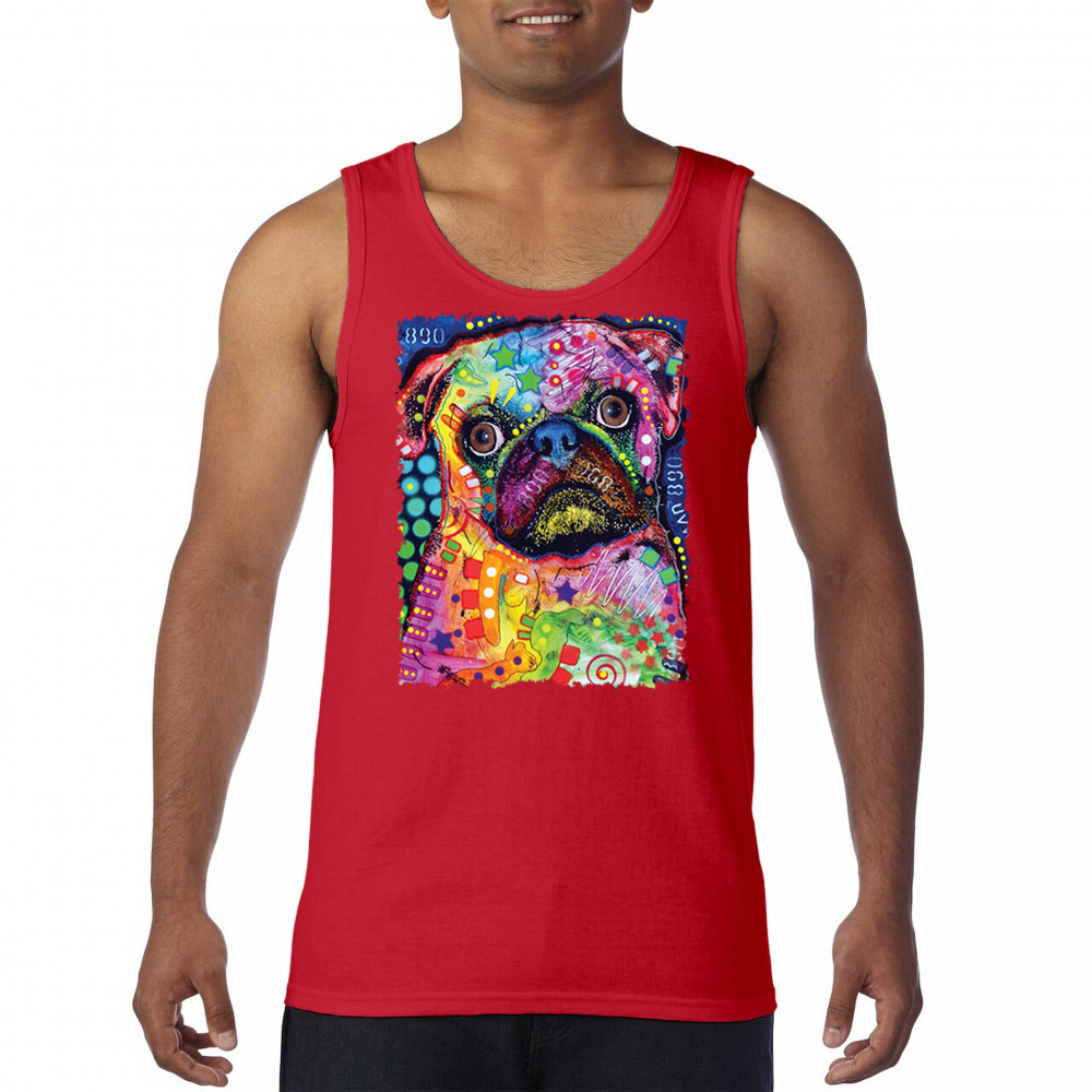 CUTE PUG PUPPY tank top dean russo colorful neon mosaic dog art men's top red