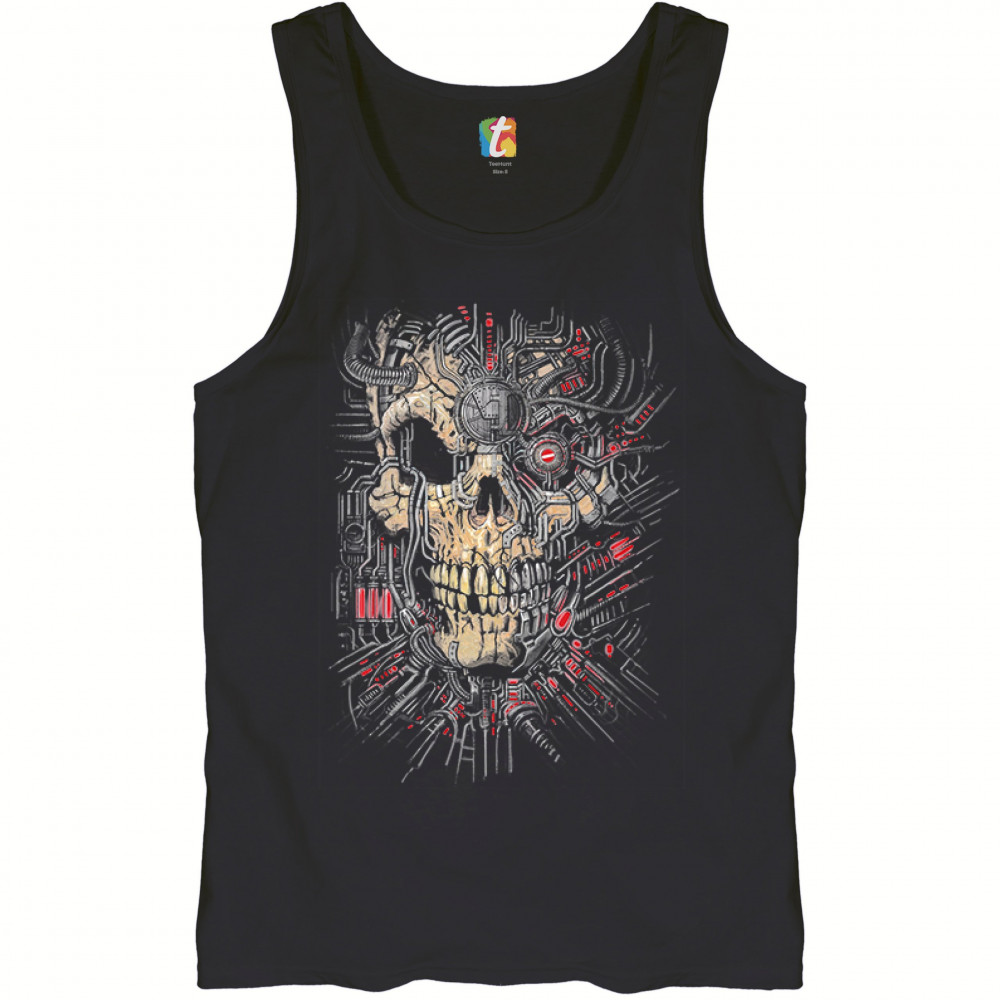 CYBORG SKULL FACE tank top scary cyberpunk robot horror men's top black
