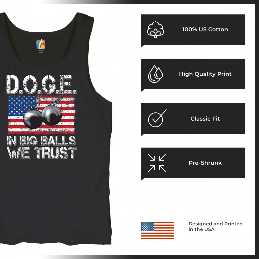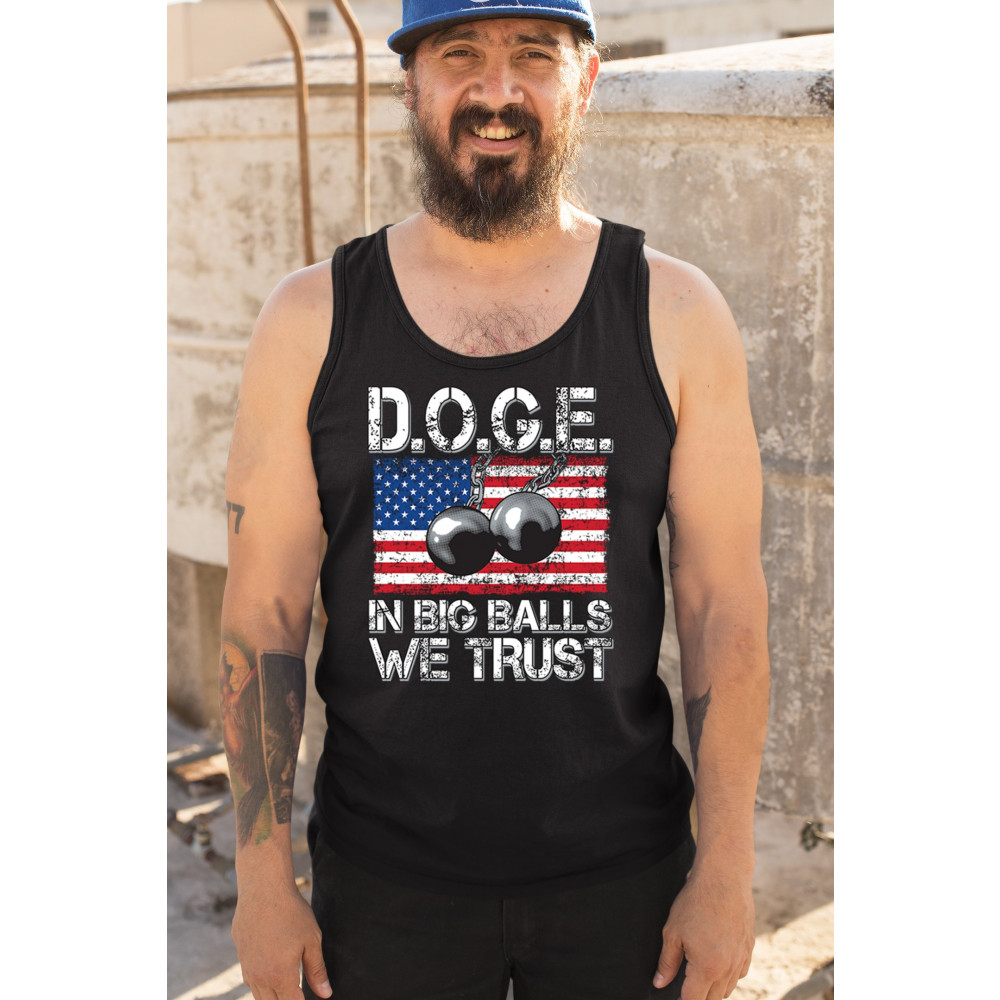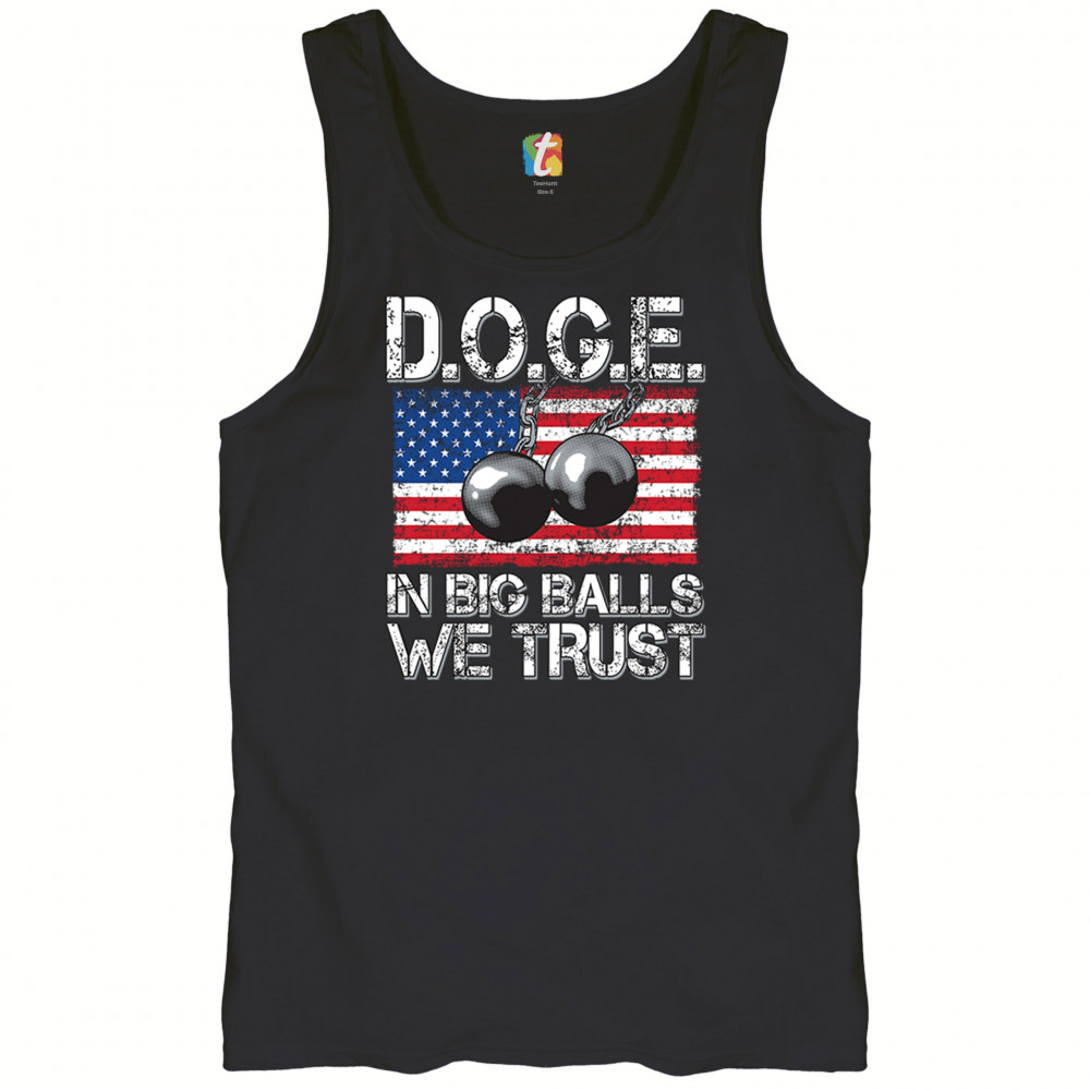 The D.O.G.E. In Big Balls We Trust design blends patriotic grit with sharp political satire. Featuring chained wrecking balls over a distressed American flag, this graphic hits hard. Perfect for conservative men, bold personalities, and political events like rallies, debates, and meetups.