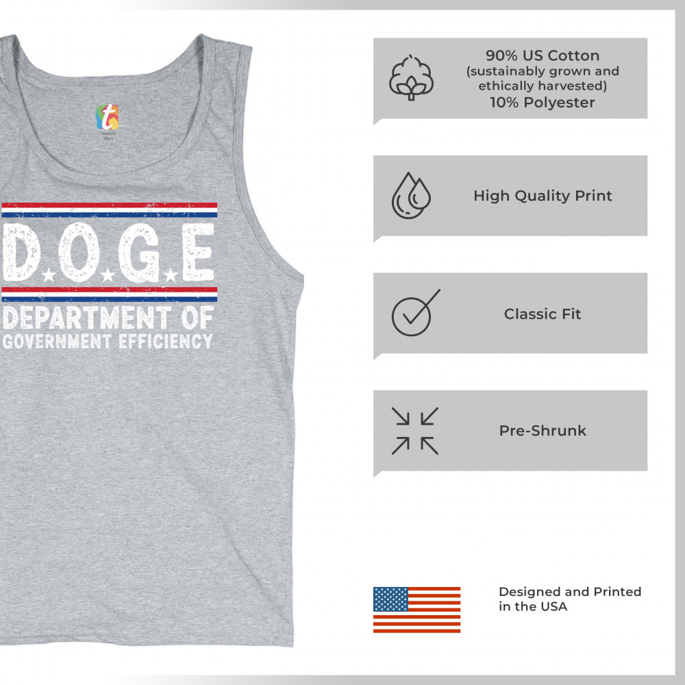 The D.O.G.E. – Department of Government Efficiency design features distressed bold text, stars, and stripes in patriotic red, white, and blue. Combining political parody with classic Americana flair, it’s perfect for conservatives, libertarians, and anyone critical of big government. Great for protests, events, or just everyday bold statements.