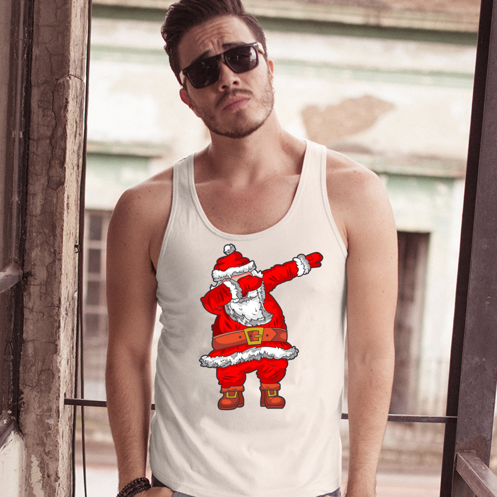 DABBING SANTA CLAUS tank top merry christmas funny dab dance x-mas men's top white