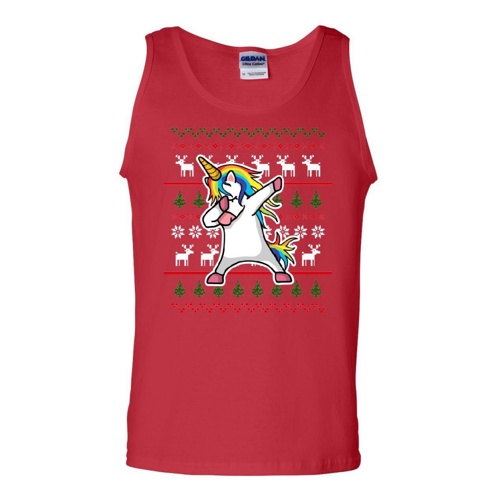 DABBING UNICORN ugly sweater tank top christmas xmas dab rudolph sleeveless red