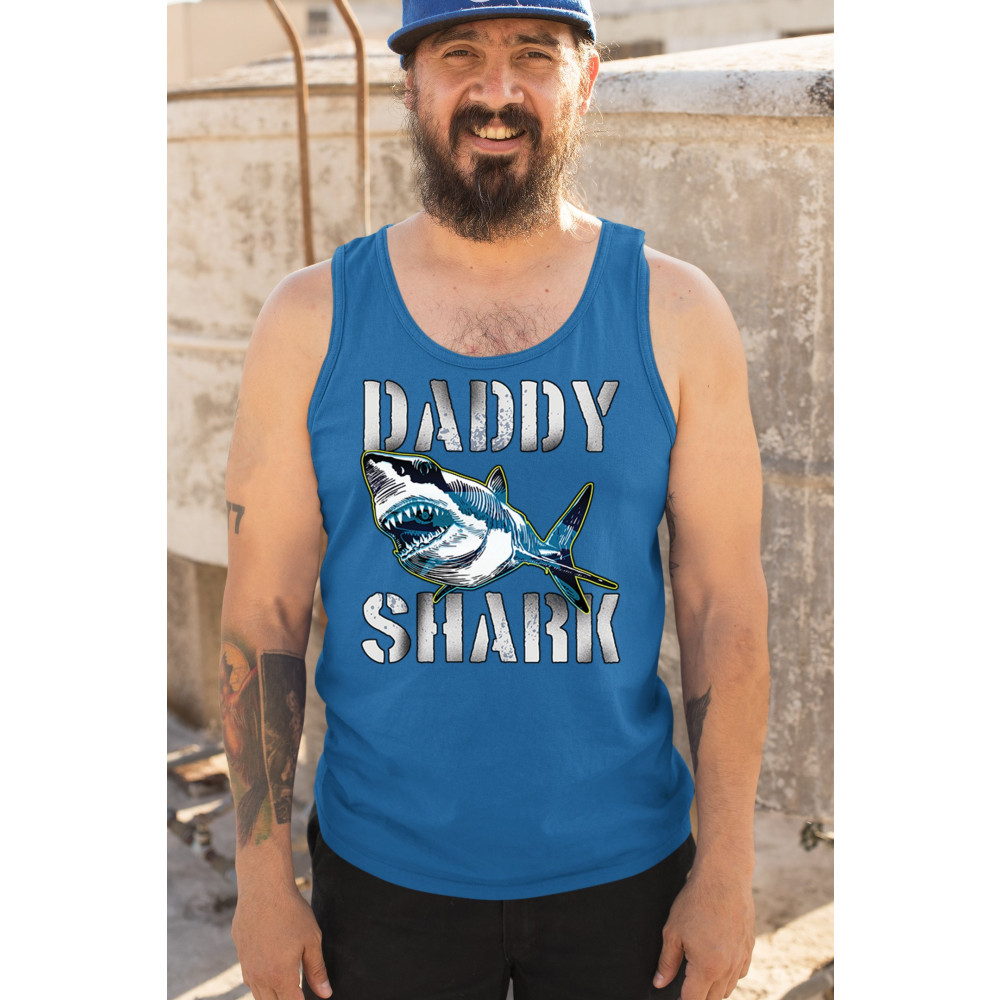 DADDY SHARK FUNNY FATHER'S DAY tank top funny dad joke grandpa papa men's top royal blue
