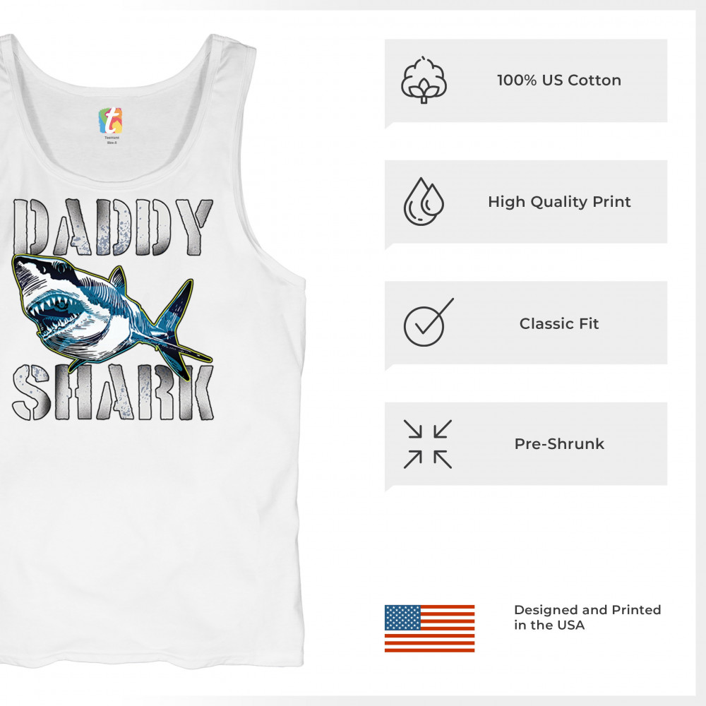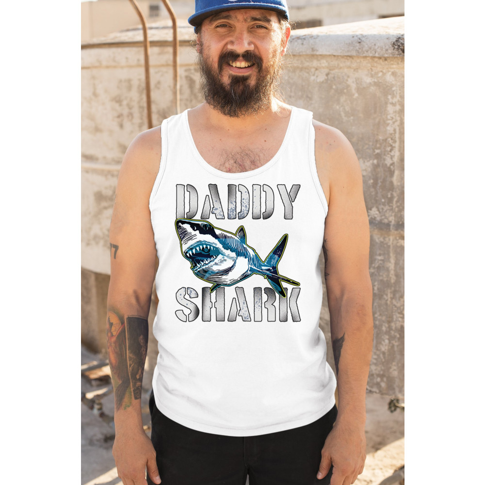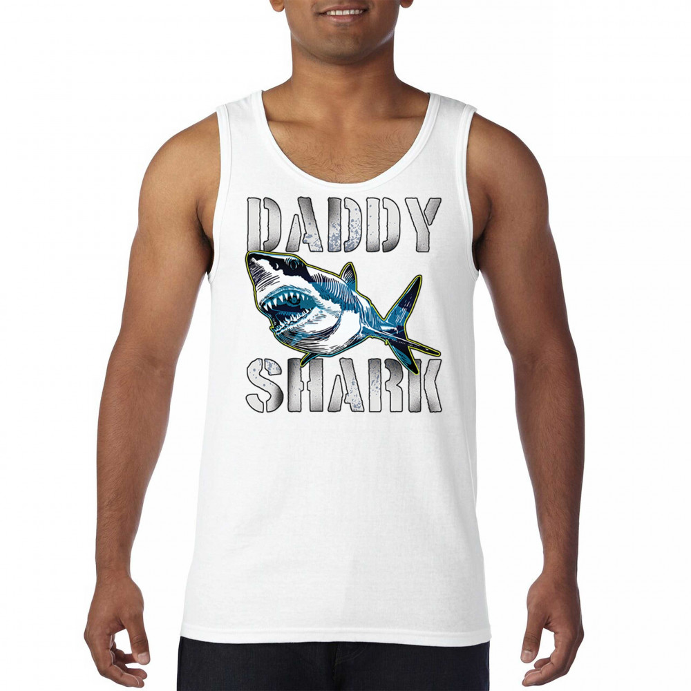 DADDY SHARK FUNNY FATHER'S DAY tank top funny dad joke grandpa papa men's top white