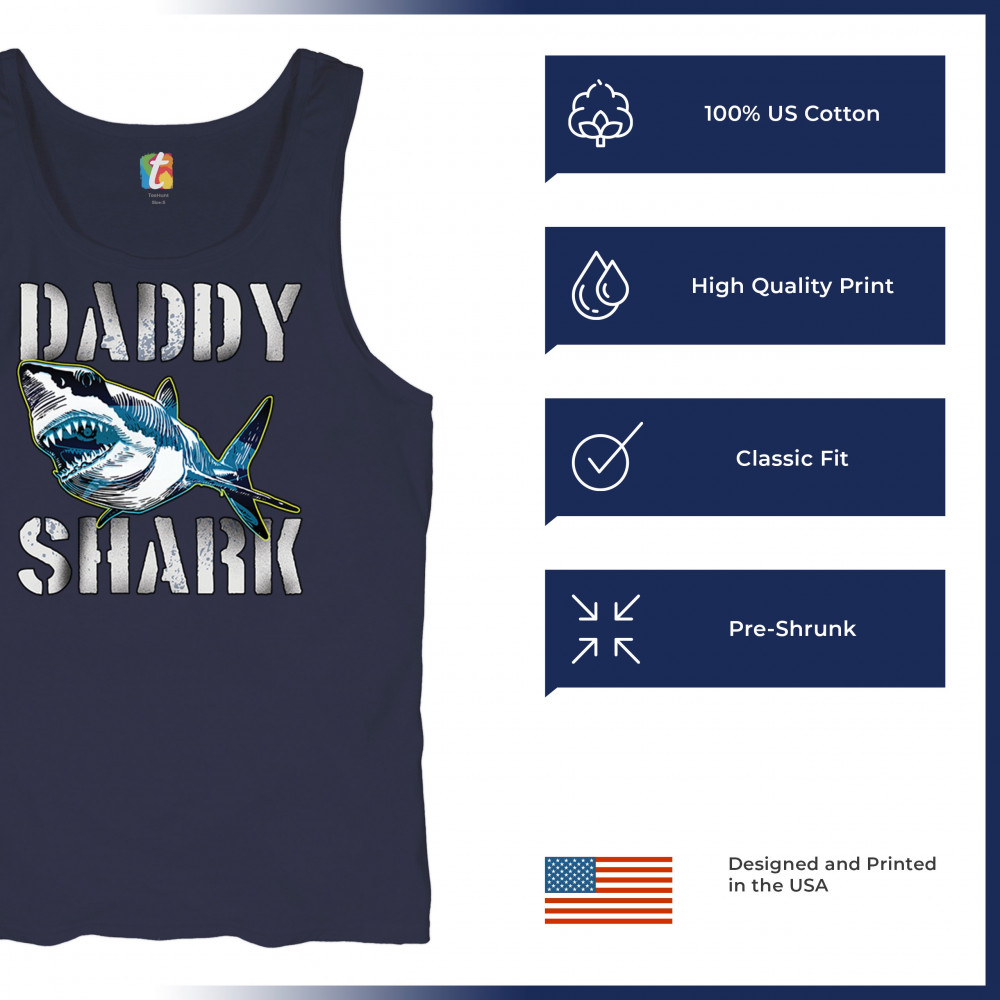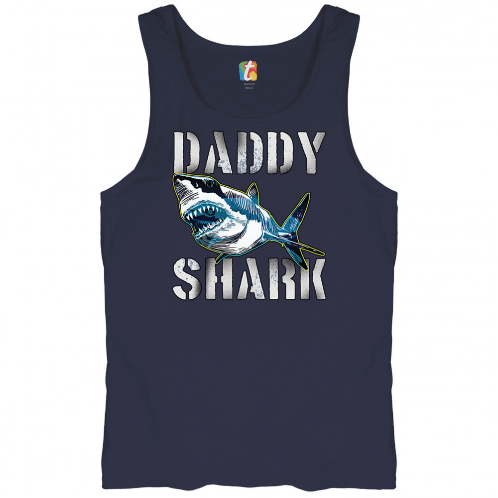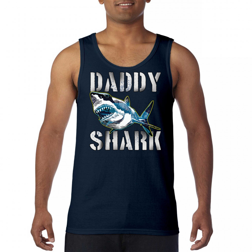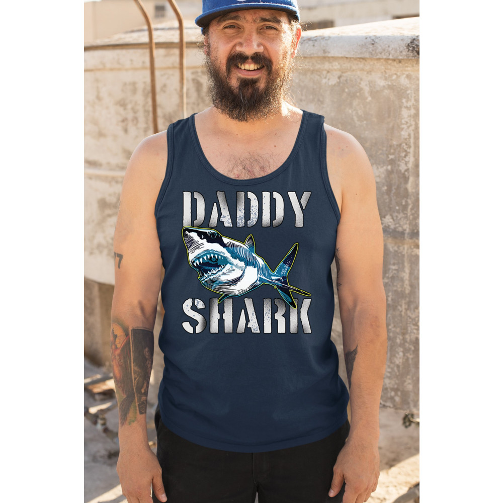 DADDY SHARK FUNNY FATHER'S DAY tank top funny dad joke grandpa papa men's top navy blue